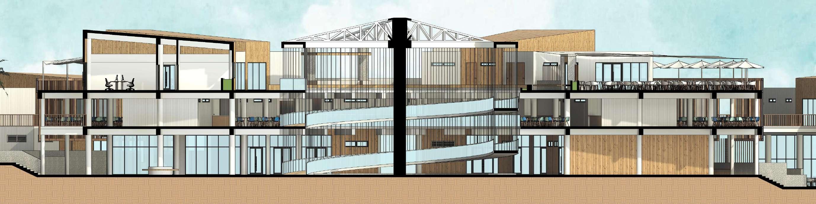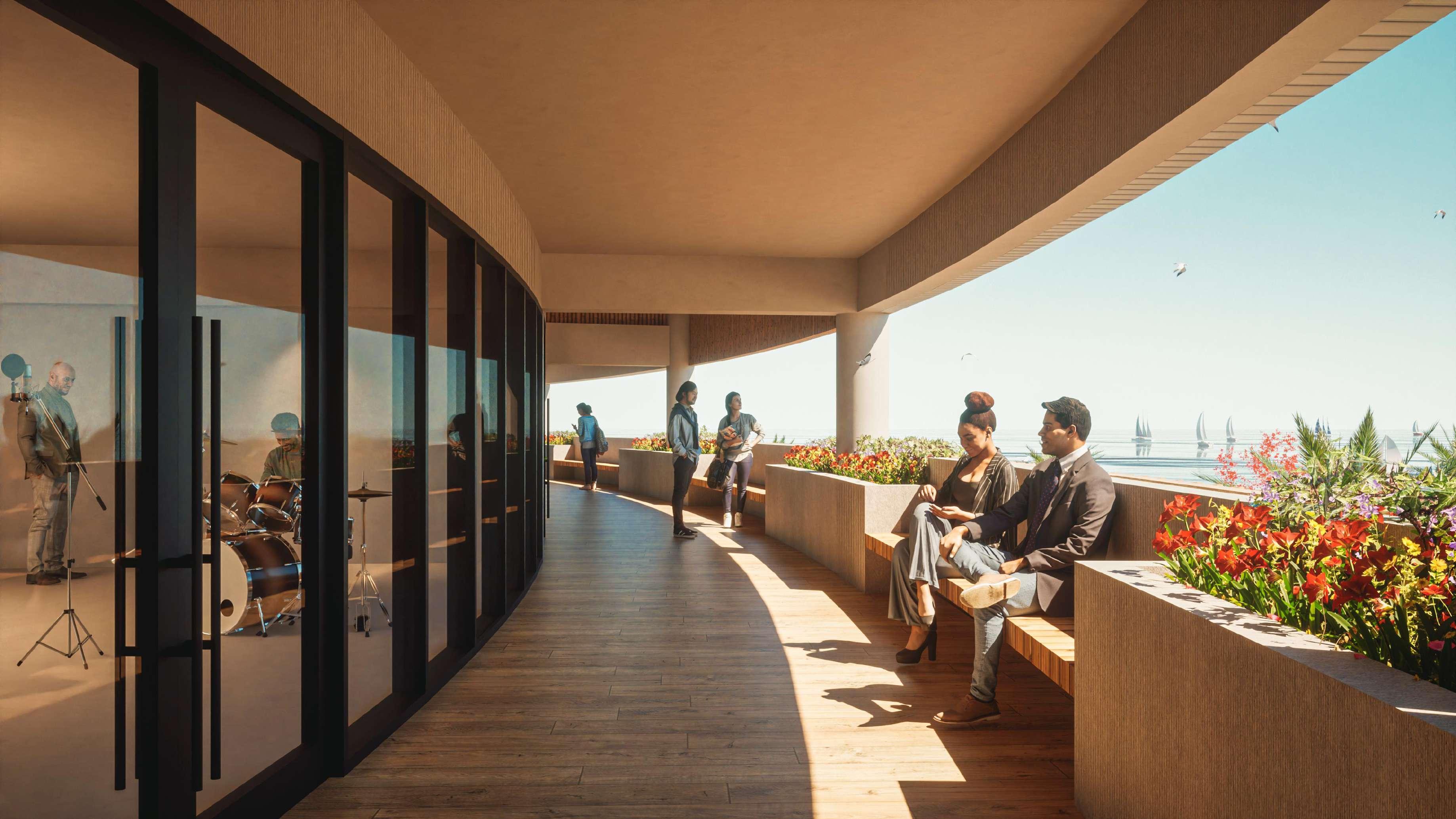 Vista del eje longitudinal que conecta el proyecto al malecón