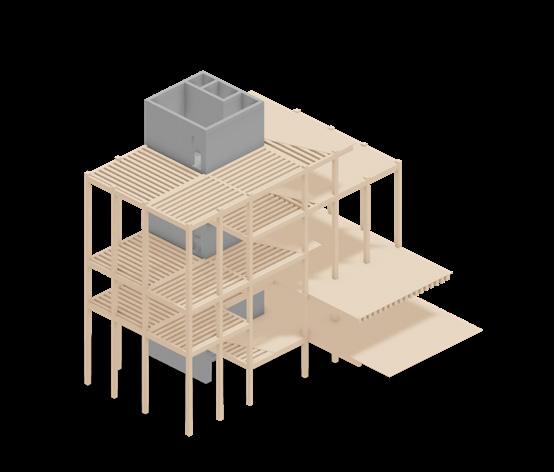 The structural disallows for the insertion of rooms as desired. A timber post and beam structure fulfls these needs best, while also providing excellent internal qualities. The structural system will be left exposed from within.