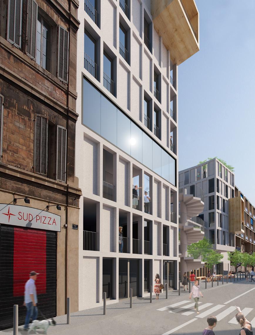 gonale, comprend une crèche, des magasins au rez-de-chaussée, ainsi que des logements de différentes tailles aux étages supérieurs.