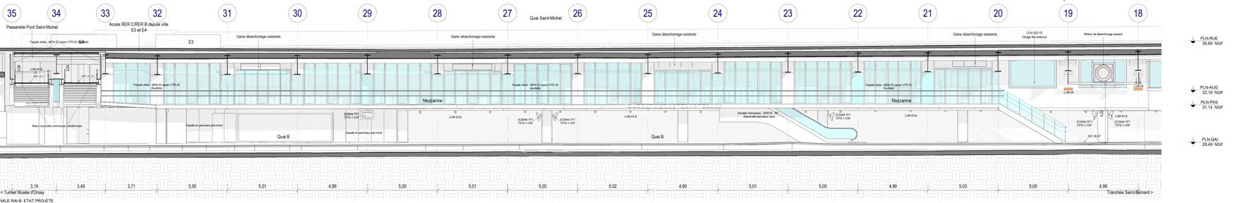 Projet de réaménagement de la gare ligne RER C Saint-Michel Notre-Dame à Paris.