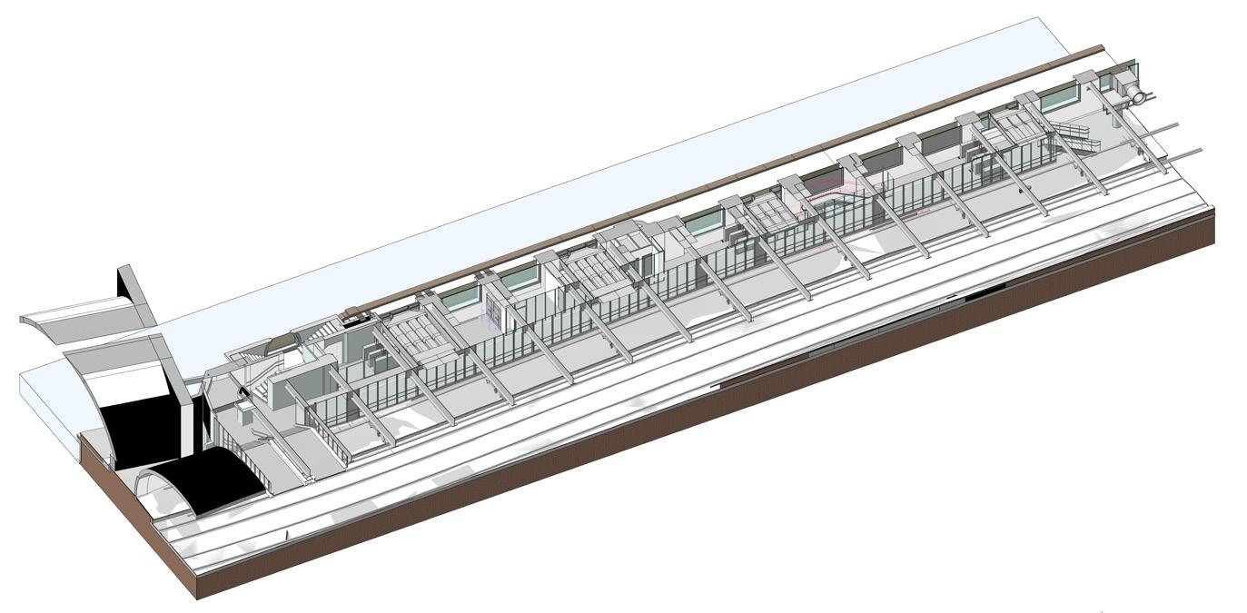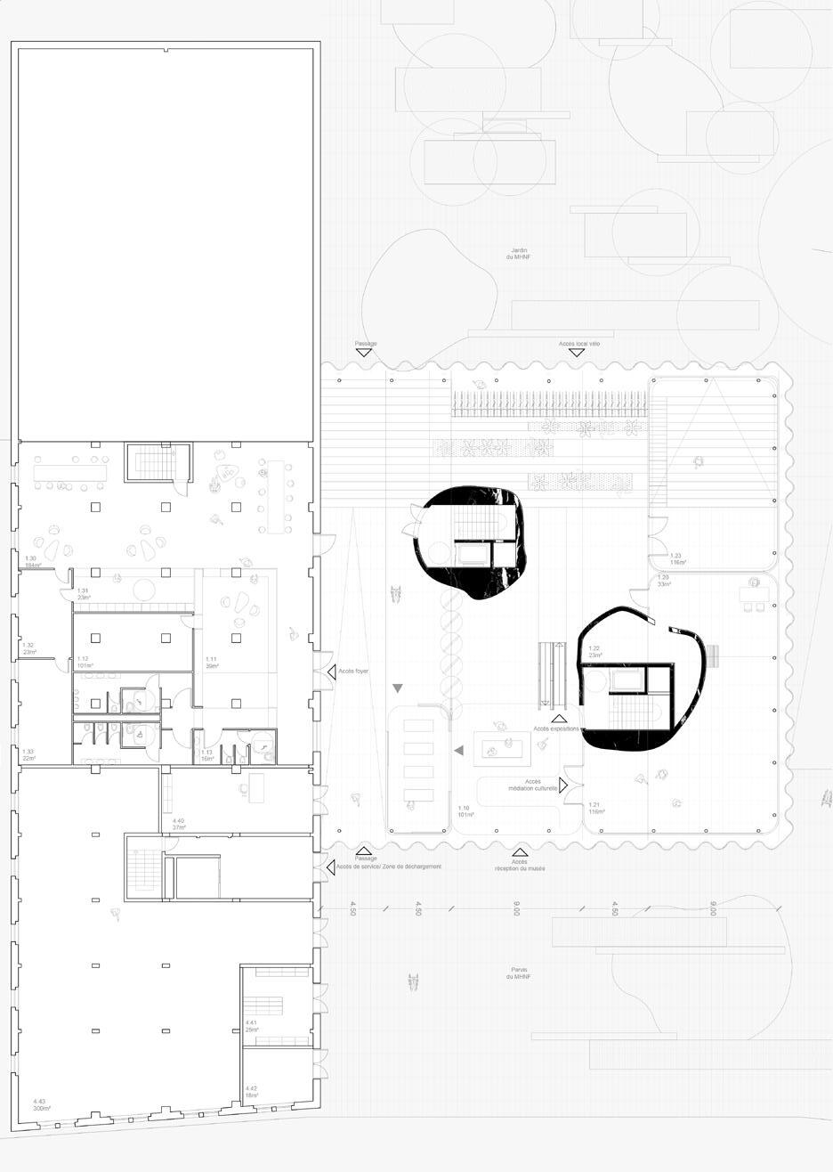 ent pérmeable, inséré dans un axe urbain et paysager fort. L’architecture flexible permettra une évolution future des espaces d’expositions. Les plateformes de la nouvelle extension seront en partie soutenues par deux noyaux structurels en béton. Au sein de ces noyaux, se développeront les circulations du musée, ainsi que des espaces d’expositions immersifs.