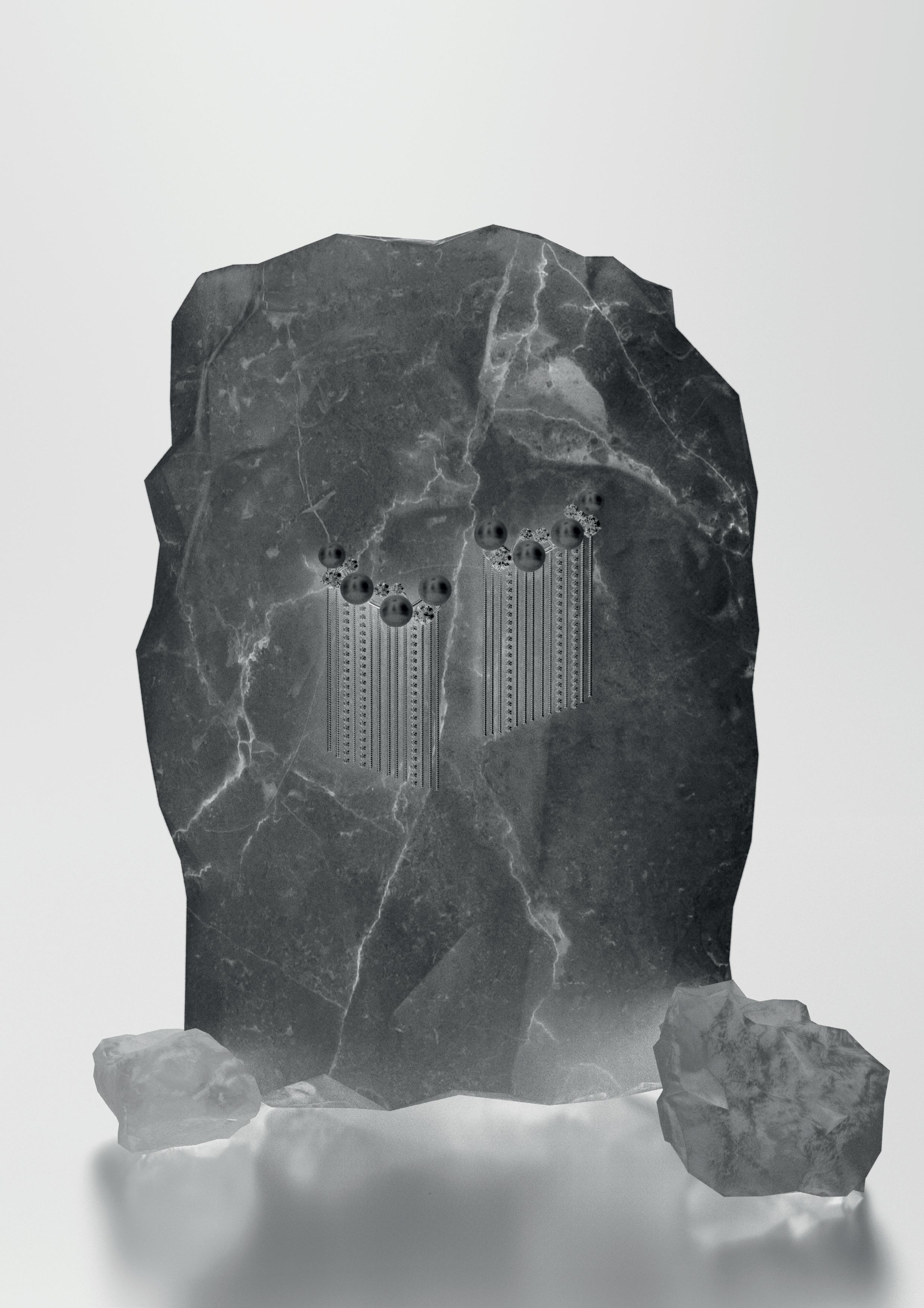 Nella pagina a sinistra, indossato del render di Costellazione (realizzato con Photoshop)