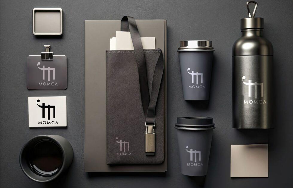 Se ajustan las proporciones y el espaciado entre las letras para lograr una cohesión visual. La parte inferior del logo incluye el nombre "MOMCA" en una tipografía clara, alineada con la base de la "m", asegurando que todos los elementos se integren de manera fluida y armónica.