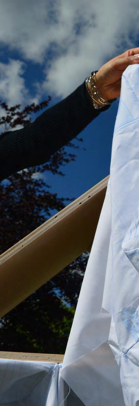 As a research assistant, my roles included conducting research on water containers and infrastructure and iterating collaboratively on scale models of the proposal. Later during fabrication and installation, my roles included sewing shingles and creating drawings documenting the overall pavilion as well as details of the shingles’ movement. Project leadership and overall design of research and pavilion by Debbie Chen.