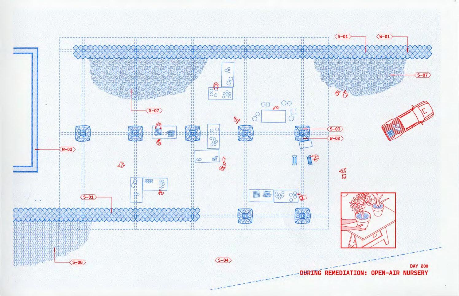 While soil is remediated via the introduction of microbes, fungus, and plants, the community gathers on site for workshops, markets, and recreational activity along the waterfront.