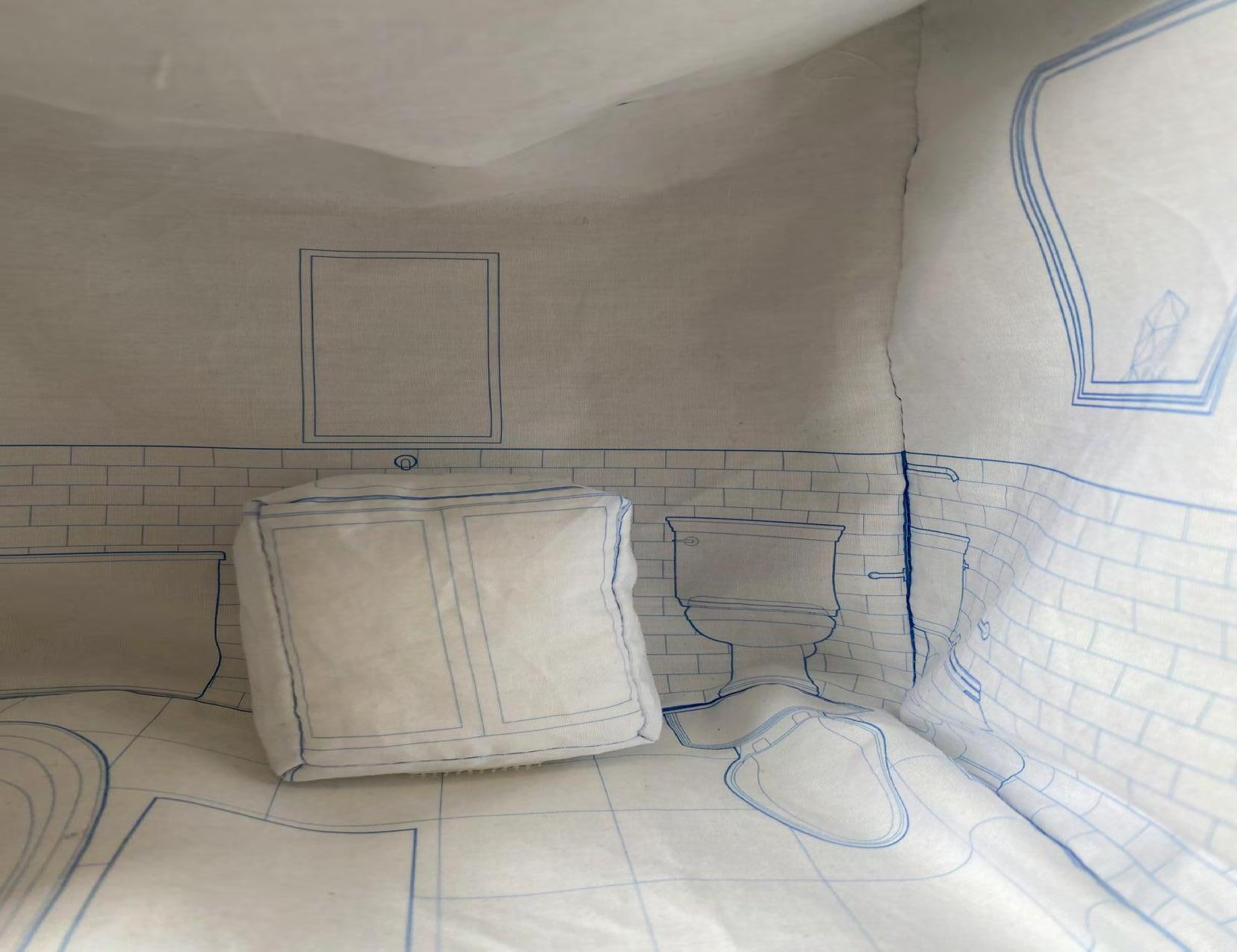 Elevations and plans produced in Revit are printed onto fabric and sewn into room suits. Assets are all downloaded from high-end home furnishing company websites, freely available in the hopes that BIM-using designers will spec their products. Here, however, their products can be enjoyed as toys without expectation of purchase.