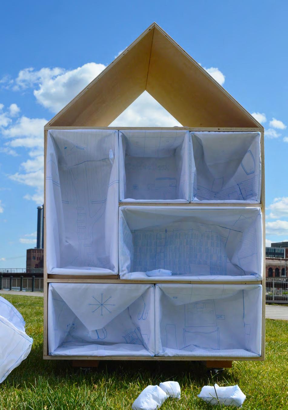 In this project, a dollhouse acts as a physical analog for BIM software. The familiar blue and white Revit interface becomes tactile in soft fabric and polyester stuffing. Similar to design options in Revit, “room suits” (fabric slipcovers) dress blank white boxes, facilitating endless combinations of occupancies, adjacencies, and dimensional parameters. The dollhouse’s mutability calls attention to the respective roles played by parties involved in BIM-aided design, and to the sometimes ludicrous possibilities in built space afforded by BIM.