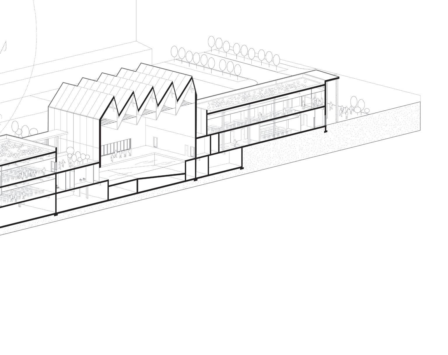 The concept is An approach to reference the rich tapestry of history with the dynamic present, establishing an unique Motif that harmonizes tradition and innovation. The Motif creates a new community center as an Assemble of Typologies and arts, a diverse and inclusive hub where people unite as a Village, uniting in the shared production of Arts, Sports, and Culinary experiences.