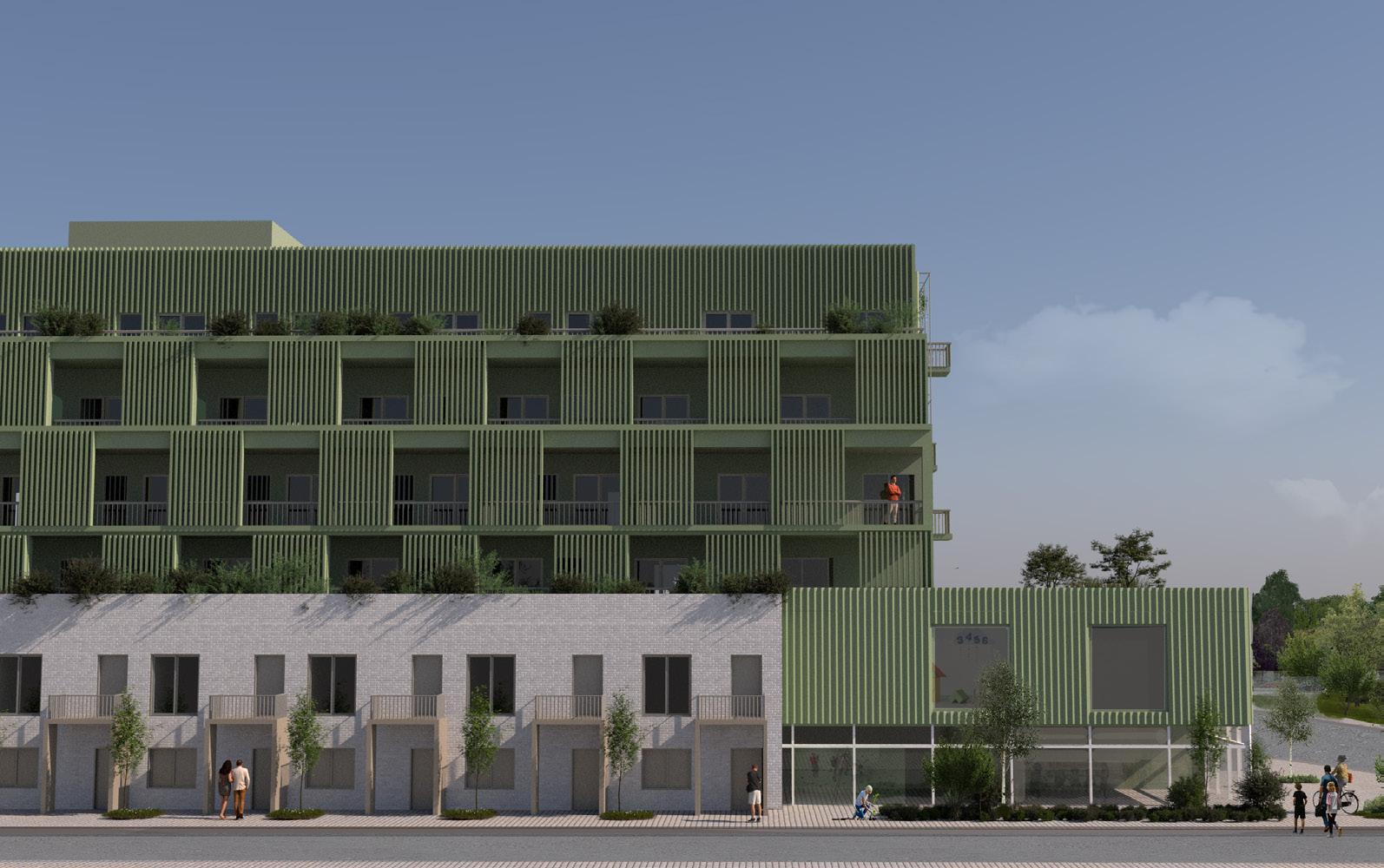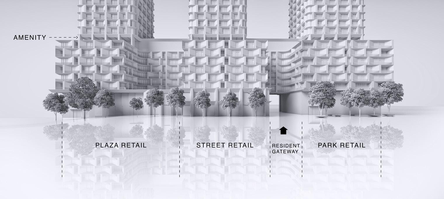 Architecturally, the design balances density and livability through terraced podiums, green roofs, and active ground-floor uses that foster street-level vibrancy. Public realm improvements and connections to surrounding neighborhoods ensure the community feels integrated and accessible.