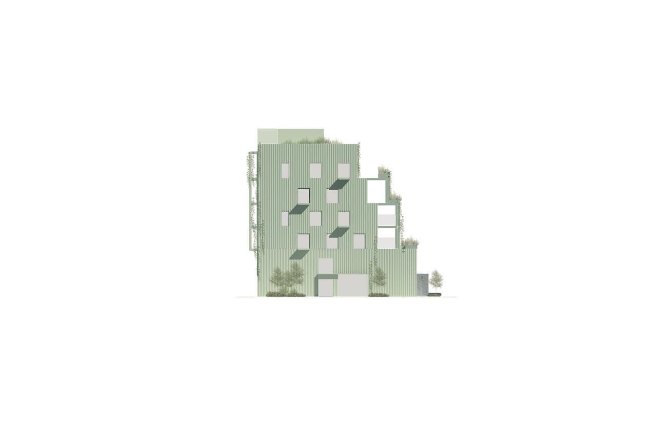 Thus, VINEYARD HOUSE focuses on human comfort and creates opportunities for green spaces; townhouses make it a collection of a lively community. The main focus is healthier living; addition- al green spaces and vertical and rooftop garden allows a cycle of harvest and use, emphasizing the sense of sustainability and urban farming in the city. The natural ventilation and the green facade ultimately control the temperature, allowing people to feel more comfortable physically and mentally throughout the seasons.