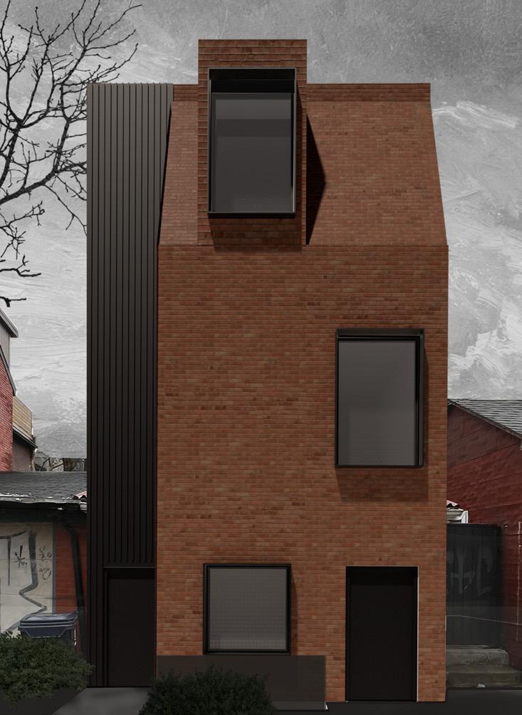 The project focuses on contextual and human experiences; rather than create an entirely new architectural language, this project is inspired by observations and fiding around the West of Queen West area. The project is based on a contextual approach where mansard roofs, dormers and punched windows are utilized. Also, with the heaviness of brick and metal, the project creates a harmonious dialogue between the old and the new and a modern interpretation of housing typologies surrounding the area. The spaces enhance the experience of open spaces and small spaces. The tight hallway leads to an open-space concept that allows the journey of affairs for the inhabitants. Additionally, the contrast between the brick and heavily corrugated metal cladding allows the attractiveness and an invitation to the duplex—the duplex is not only a shelter but also a space of sharing memories, creativities and growth
