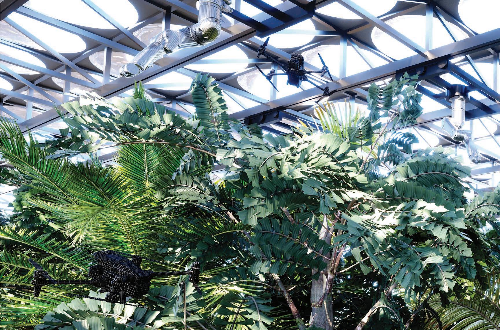 ALCL is a state-of-the-art research center located in the forecourt of the Museum of Natural History in Paris. As we enter a future where technology, AI, and automation become more efficient and effective, we begin to see a replacement of human operated systems. For years we have seen a beginning to green space automation on a micro-scale, but what if these systems could work in complete harmony with plants without human intervention? This project proposes a fully automated greenhouse filled with robots and drones dedicated to studying, monitoring, and conserving the complex flora of our planet in response to the growing rate of destruction and extinction.