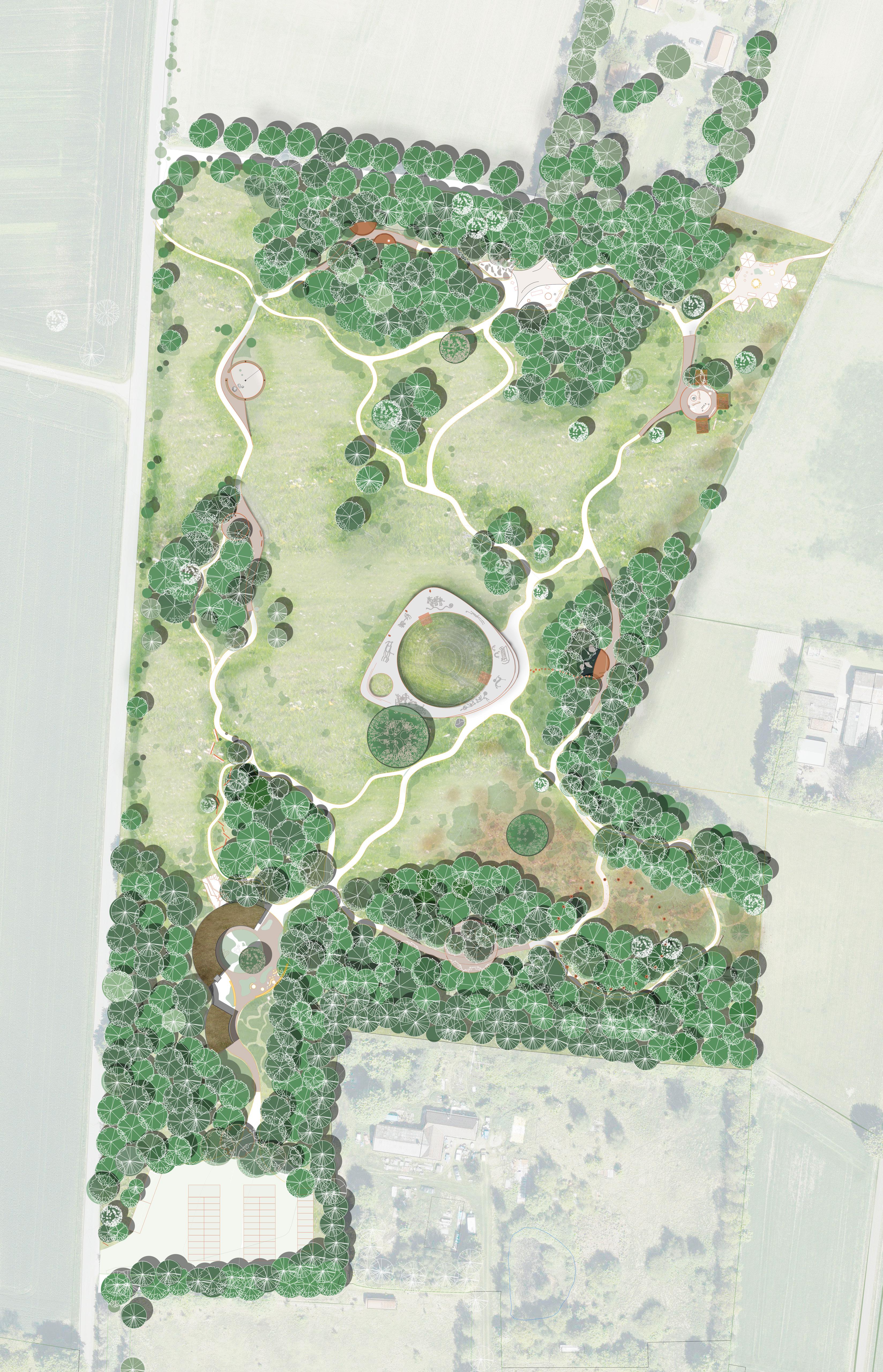 De forslåede landskabsinterventioner byder på forskellige oplevelesruter igennem landskabet. Konceptet udspringer af Egetræet og dets måde at organisere sin vækst og udgroninger.