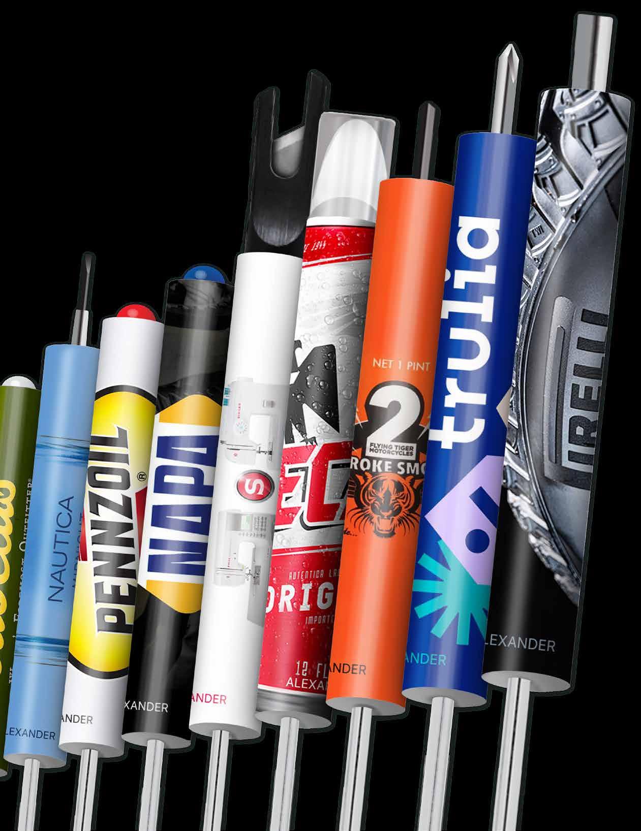 Our popular Show Off™ above-the-clip imprint is free on all printed cylindrical items. This includes pocket screwdrivers and hand tools.
