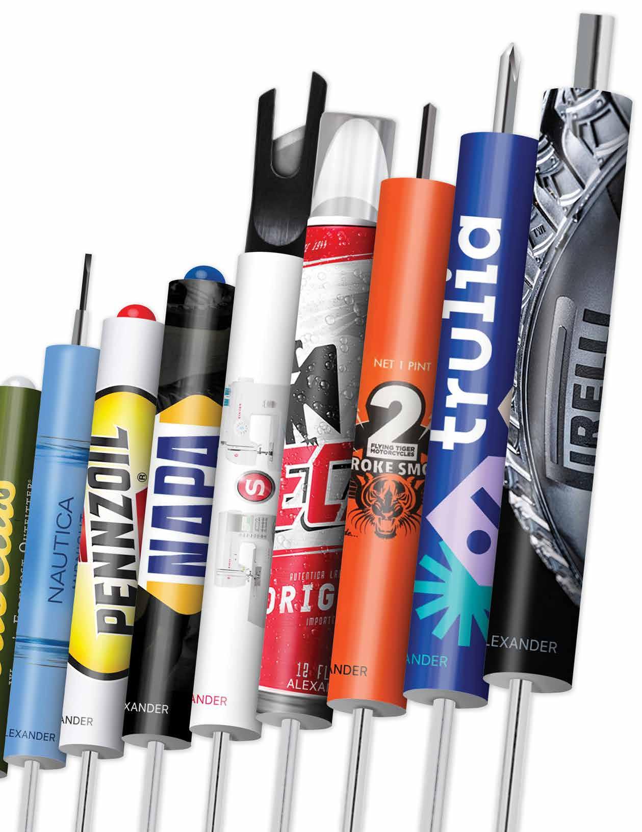 Our popular Show Off™ above-the-clip imprint is free on all printed cylindrical items. This includes pocket screwdrivers and hand tools.