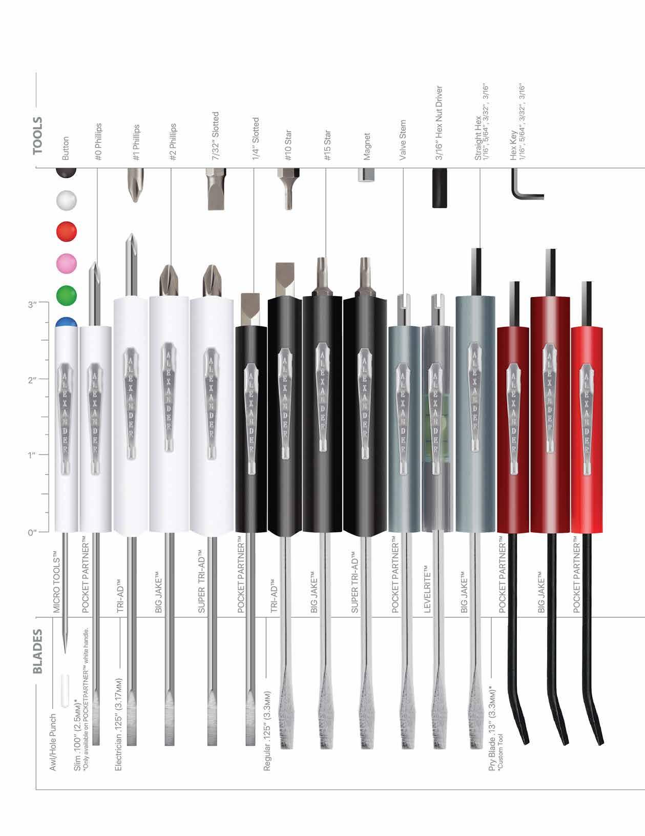 MICRO REVERSIBLE DIP SWITCH STRAIGHT HEX BOTTLE OPENER JEWELER’S/ EYEGLASS CUTTER MICRO BLADE HEX KEY (1/16”, 5/64”, 3/32”, 3/16”) (1/16”, 5/64”, 3/32”, 3/16”) 3/16” HEX NUT DRIVER TECHNICIAN 3/32” (2.4mm) HEAD PRY BLADE .13” (3.3mm) HEAD REVERSIBLE #0 PHILLIPS & 3.9mm SLOTTED HEAD