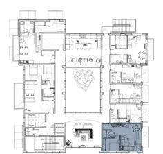 This lounge also has outdoor access onto a patio that overlooks the building entrance. The lounge has mostly glass walls and has a view into the hall and central waterfall feature.