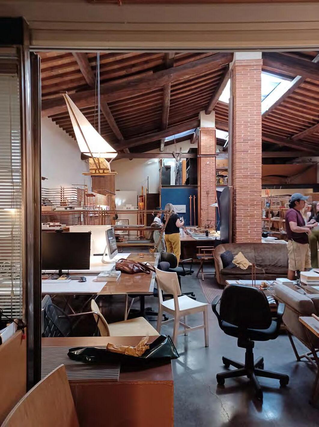 The tile flooring is a simple but traditional Italian pattern in white and grey, paying homage to the history of the building.
