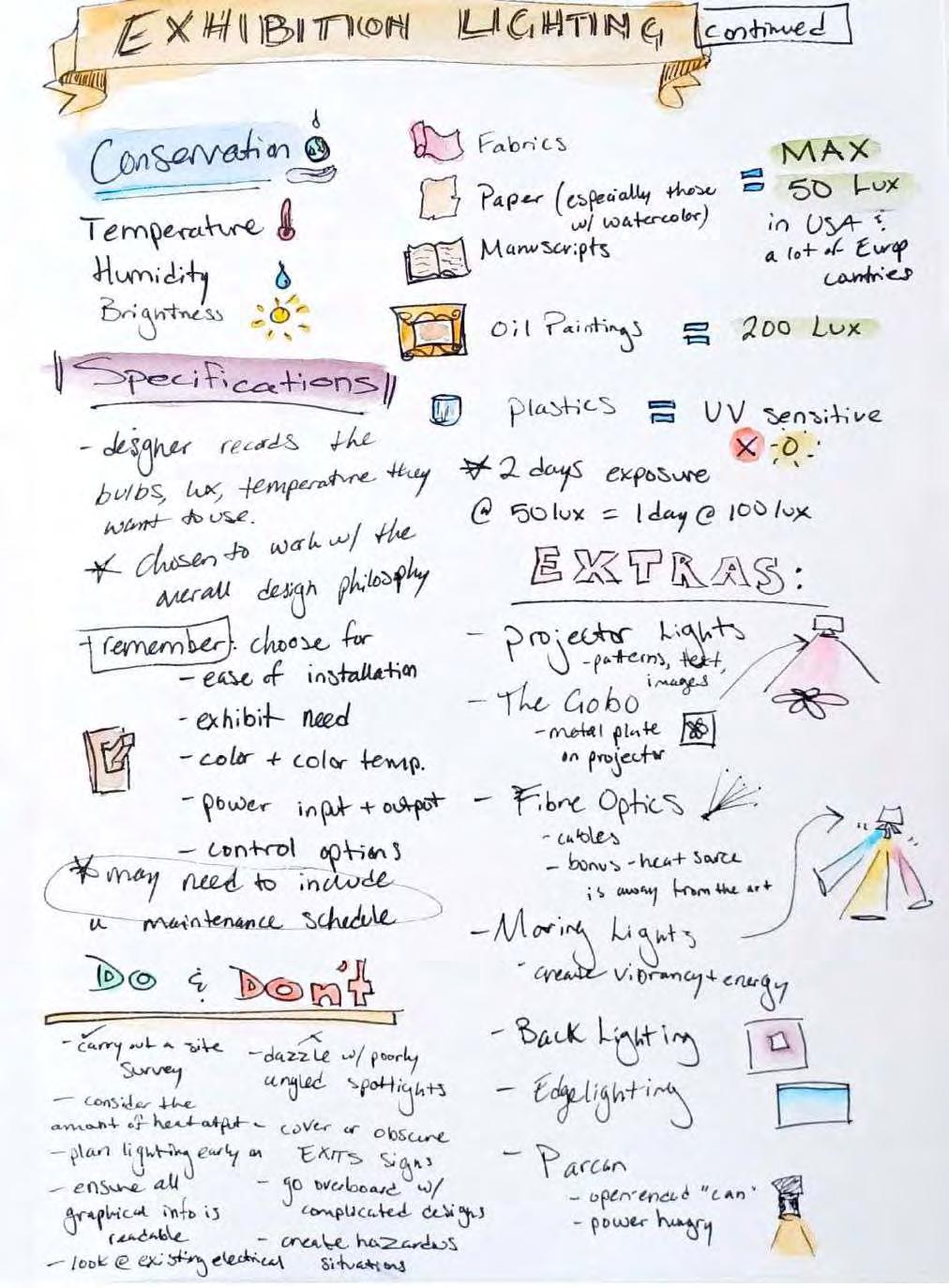 30 º Angled lights on suspended tracks Exposed ceiling - brick and wood beam Gold Information Plaques with QR Code Screen with scenery projections