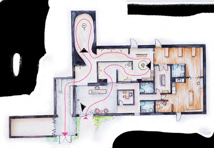 A gift shop on the left is encouraged but not forced on the guest. Storage for the lobby and gift shop is on the very left. The right side of the building is reserved for back-of-house operations, including the overflow art storage, shipping and handling area, kitchenette, employee restroom, and break room. The office and VIP viewing room are also in this section however the public have access to these spaces when invited.