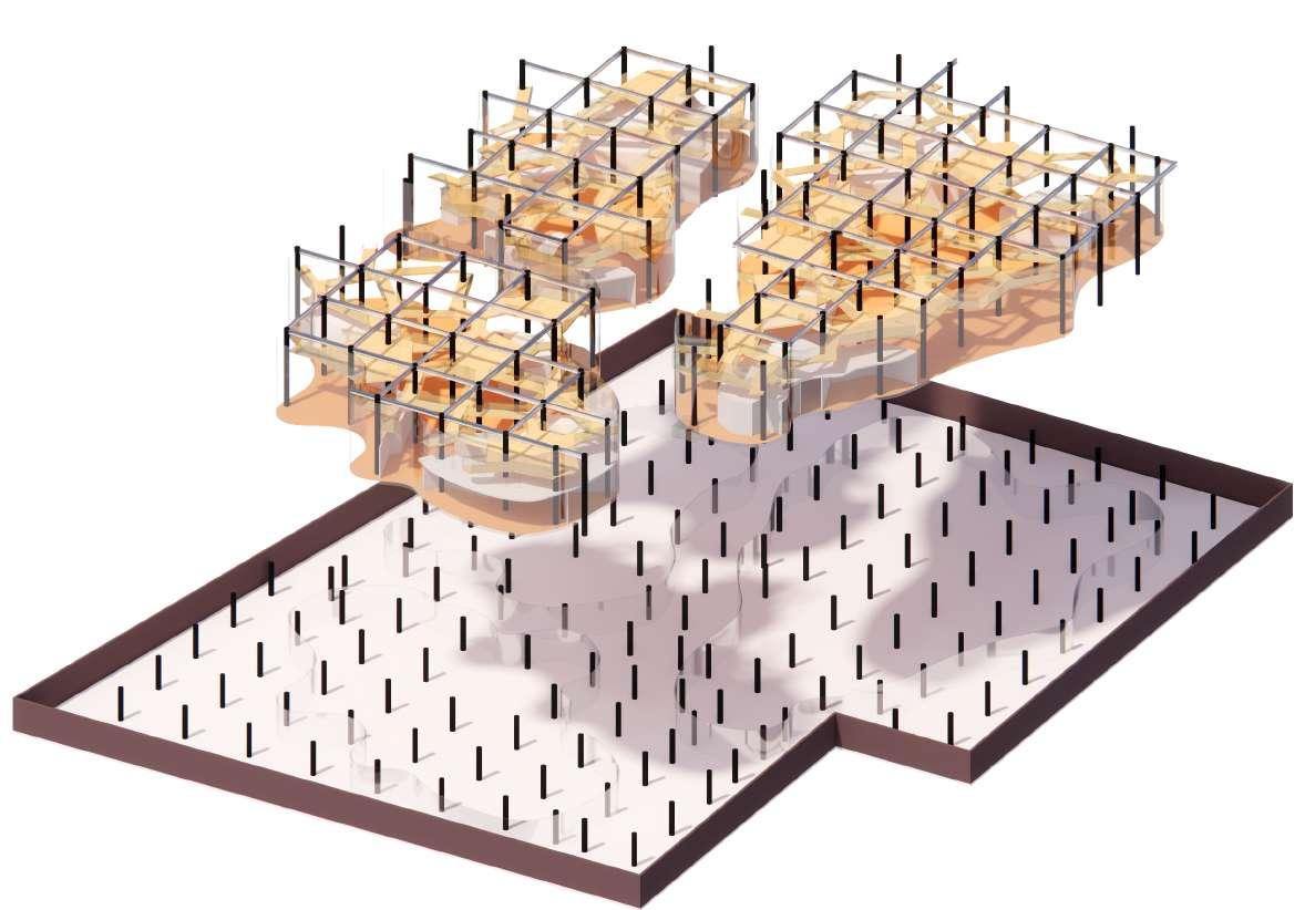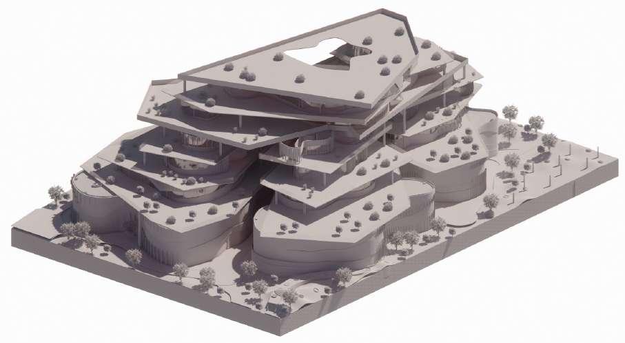 ‘Net Zero Carbon’ has been considered through the further development of parametric design, that will optimize the construction processes and the ammount of materials used. The overall processes will target the aesthetics as well as the functionality of the project, illustrating the potential of a building that questions the traditional rules of architecture and processes of construction, daring to explore spaces that grow, rather than be assembled.