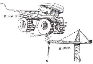Left: Overlay with tracing paper on printed section showing floors and possible inclinations.
