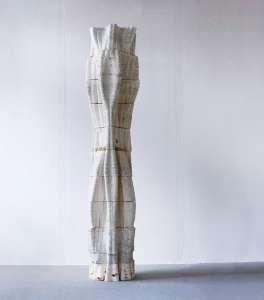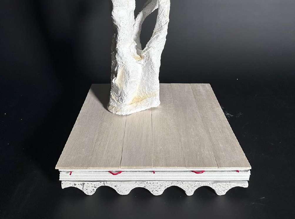 The mycelium column detail with the floor buildup took three days to make, and the most time was spent on the mould for the plaster cast.