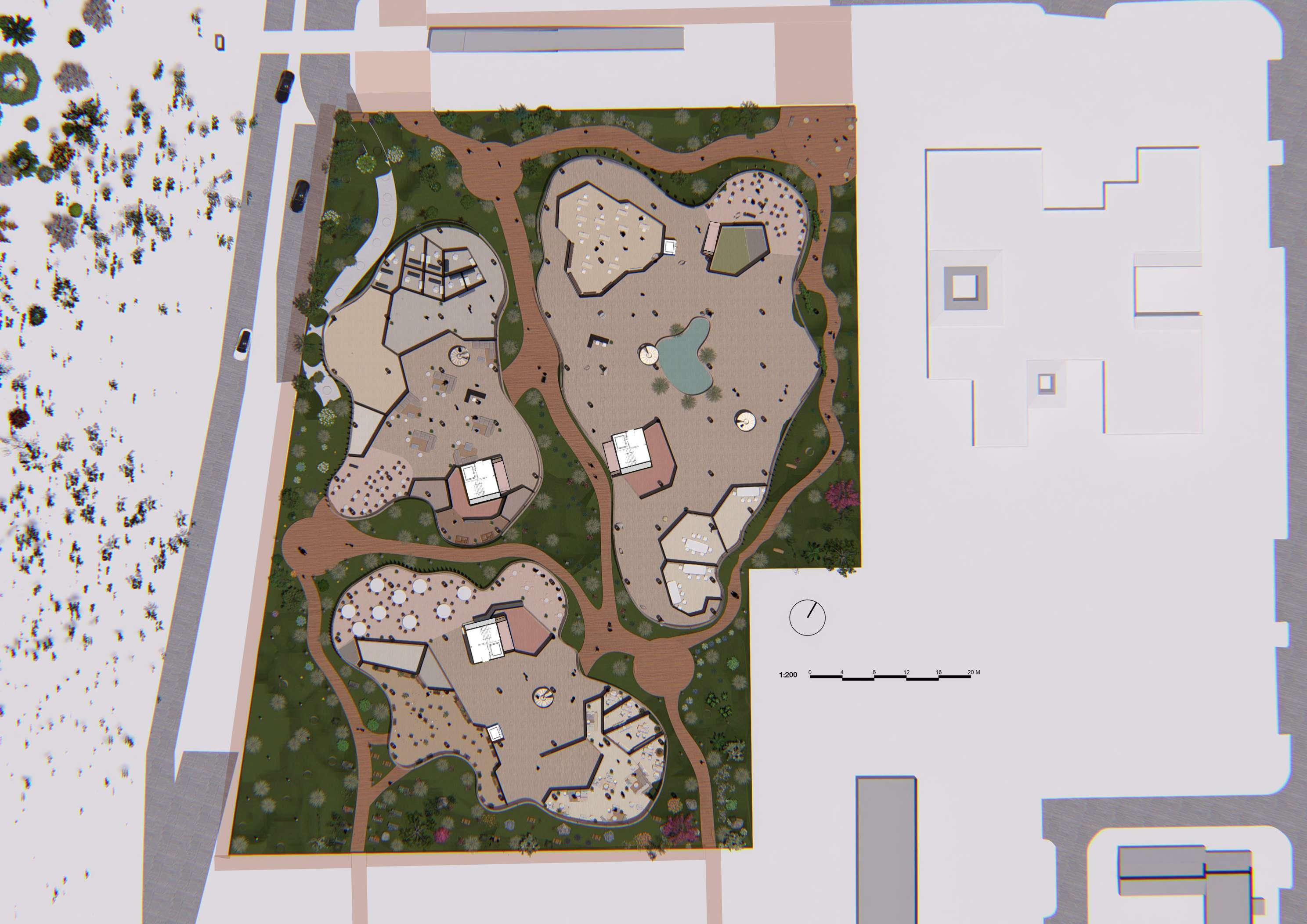 The ‘Emerging Biophilic Design’ theme of [CPU]ai is further developed through the study and resolution of the landscaping strategies, as well as a deeper dive into the world of biomaterials. This will include research into the possibilities of a green energy generator powered by algae.