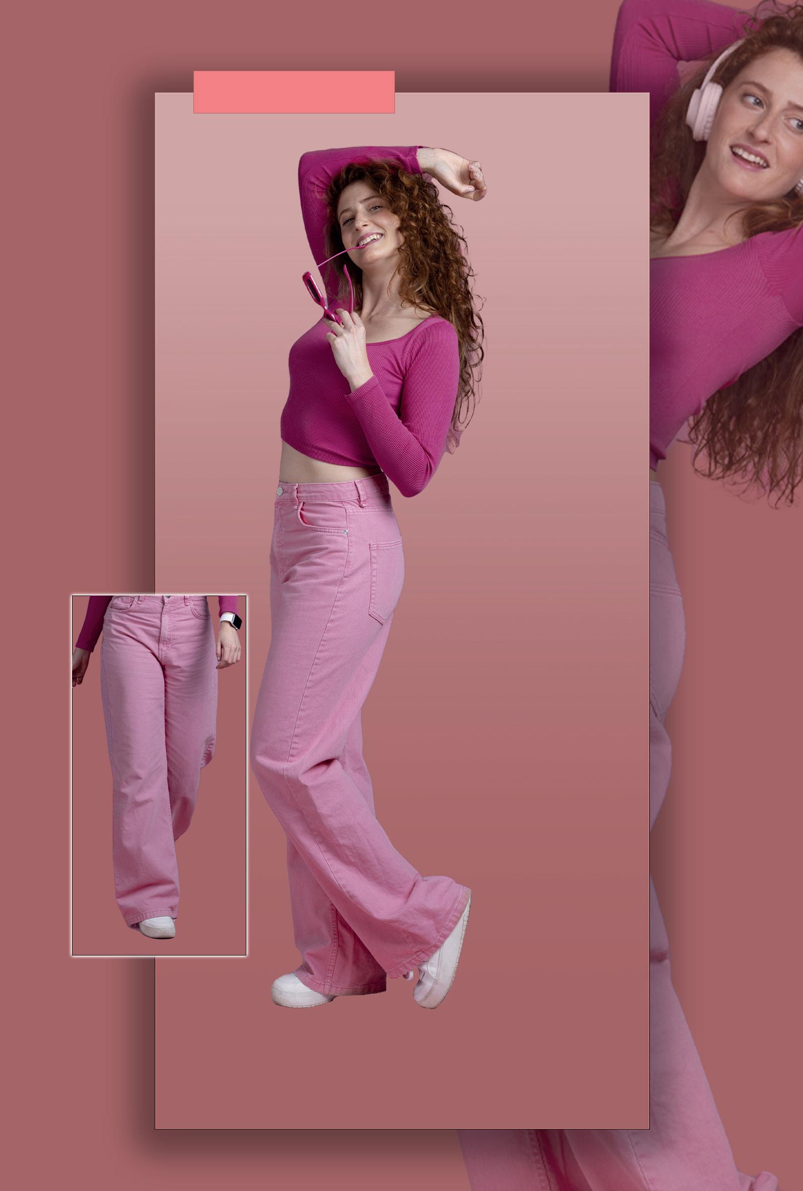 Tela jean de color rosa pastel, cómodo, a la moda y moldeador