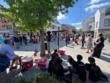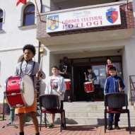 Besides drumming we learned about Erasmus projects and we had our first outdoor show in Titu Parc .