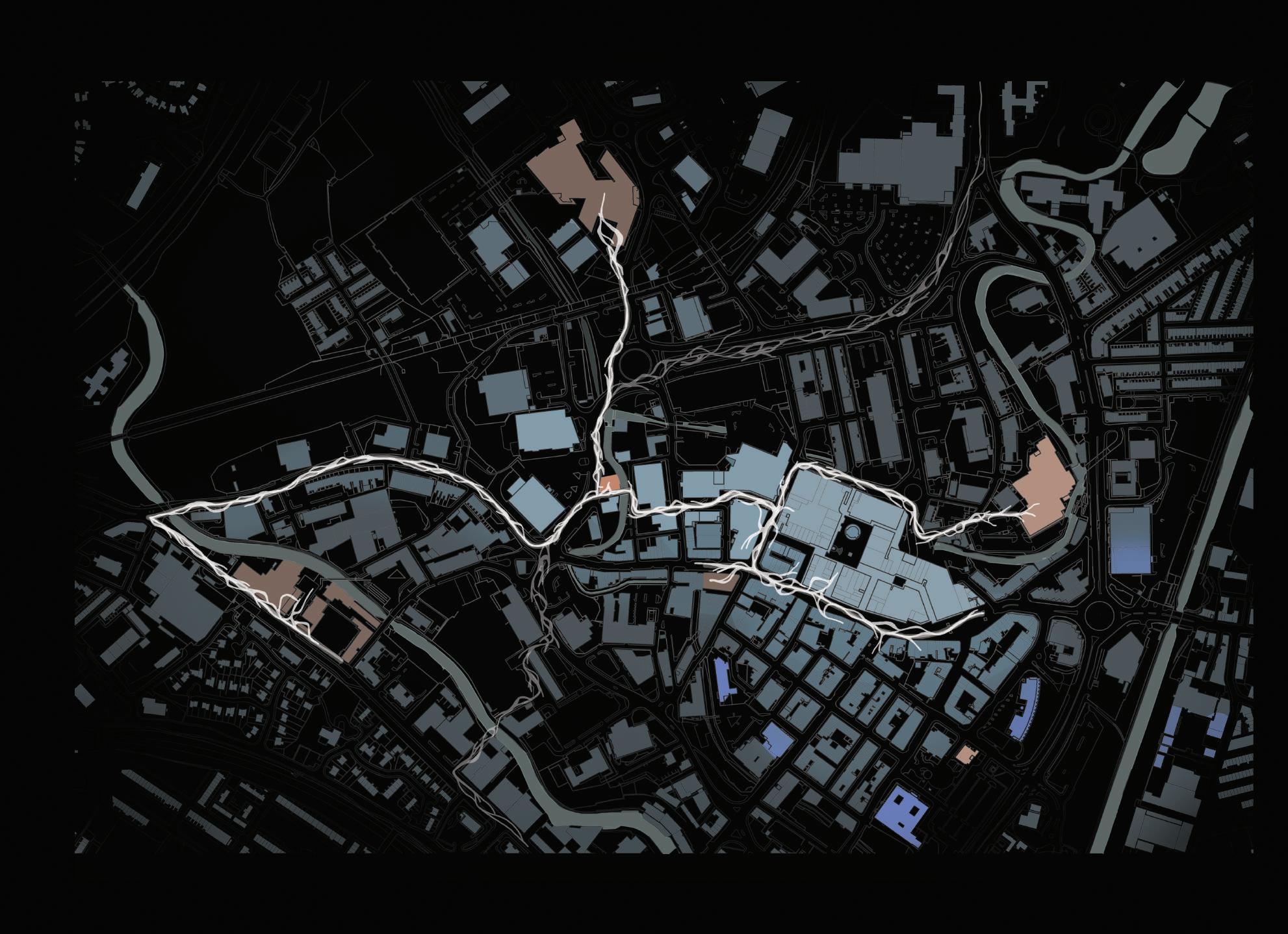 Placed close to the Burnley Market the Orchard Bridge site presents great potential for social and urban regeneration. Focused around students and healthcare members, the site aims to be a connector between multiple factors: natural environment (blue and green infrastructure), built environment (landmarks) and most importantly, young people. Therefore, the site does not only allow a local urban regeneration, but may as well be a connector for the whole region, as a healthcare hub.