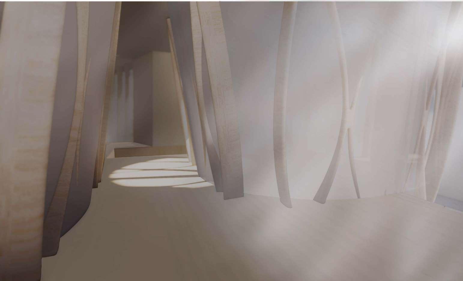 Derived from biotic systems, the column-type structures enable interactions while creating break-out spaces for the visitors/pacients.