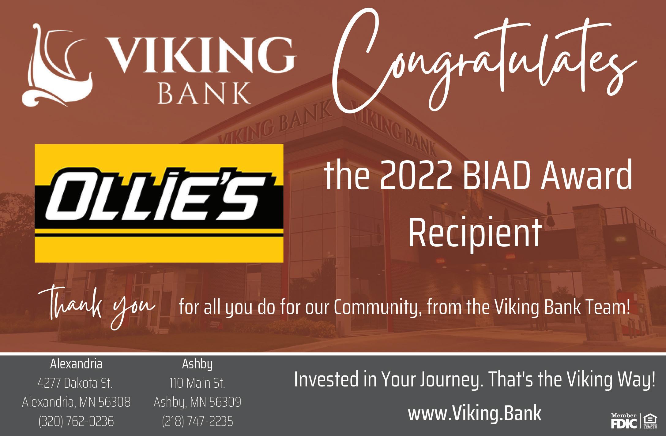 Ollie’s Service was selected as the recipient of the 2022 Business and Industrial Appreciation Day (BIAD) Award by the Boards of Directors of the Alexandria Area Economic Development Commission and Alexandria Lakes Area Chamber of Commerce.