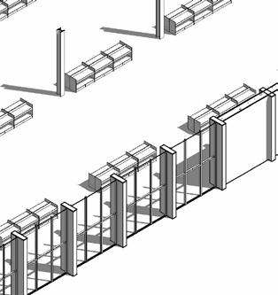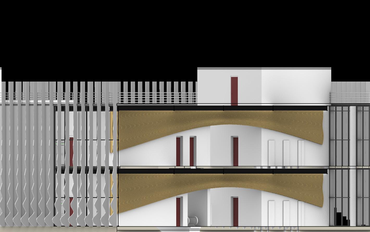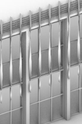 Testing out fins iterations for the main elevations, using Grasshopper scripts, in order to provide some level of lighting control and also offer a sense of water, suggesting the building's role as a ferry terminal hub