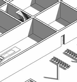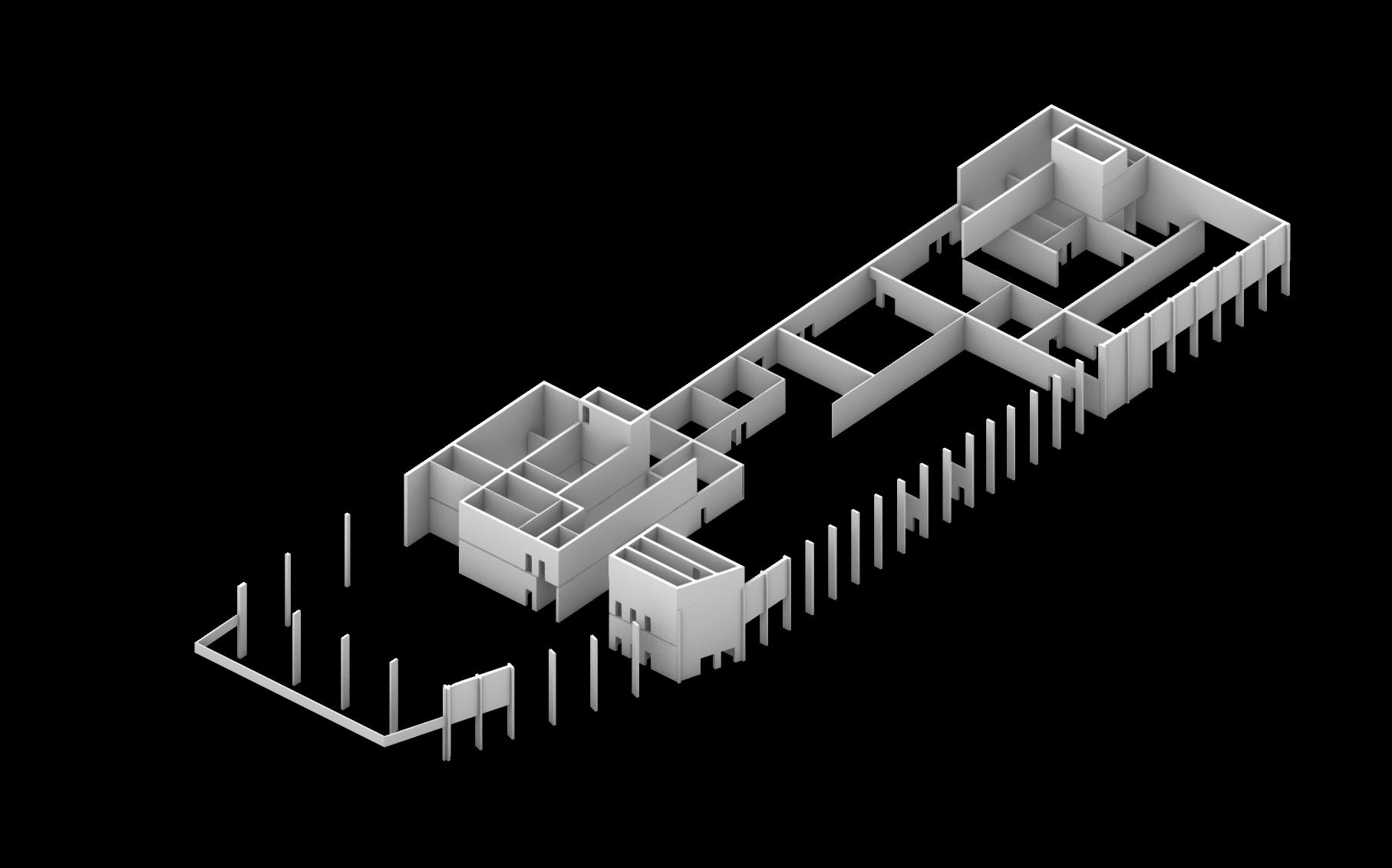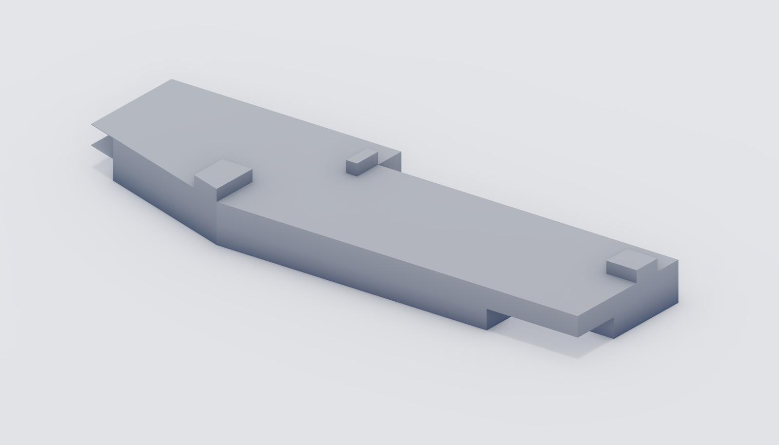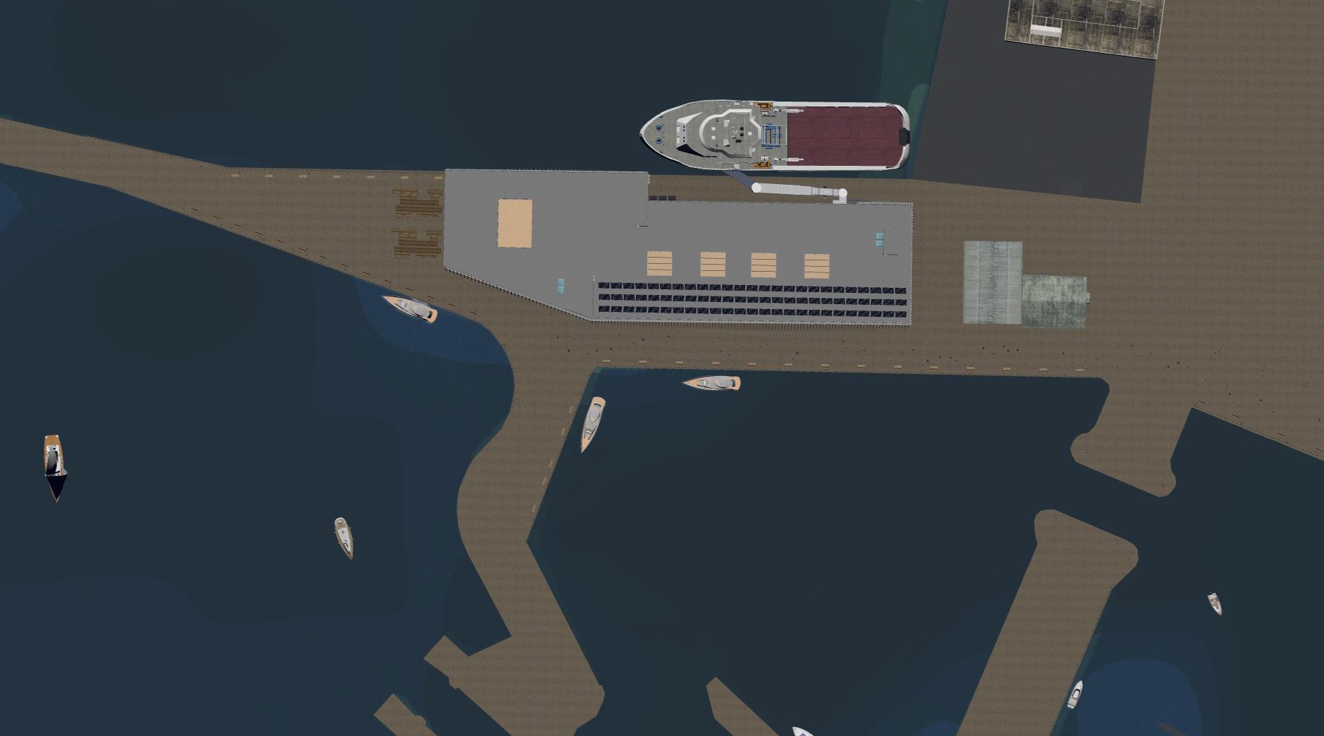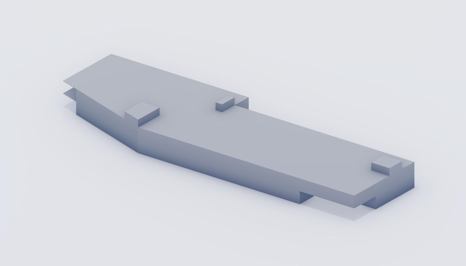 Initial rough massing of the ferry terminal, displayed over two levels to accommodate the facilities for luggage transport, passenger security, dutyfree zone and staff area, as well as proving accessibility from the upper level onto the ferry