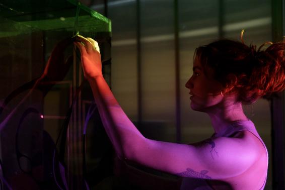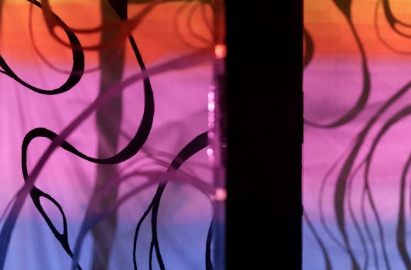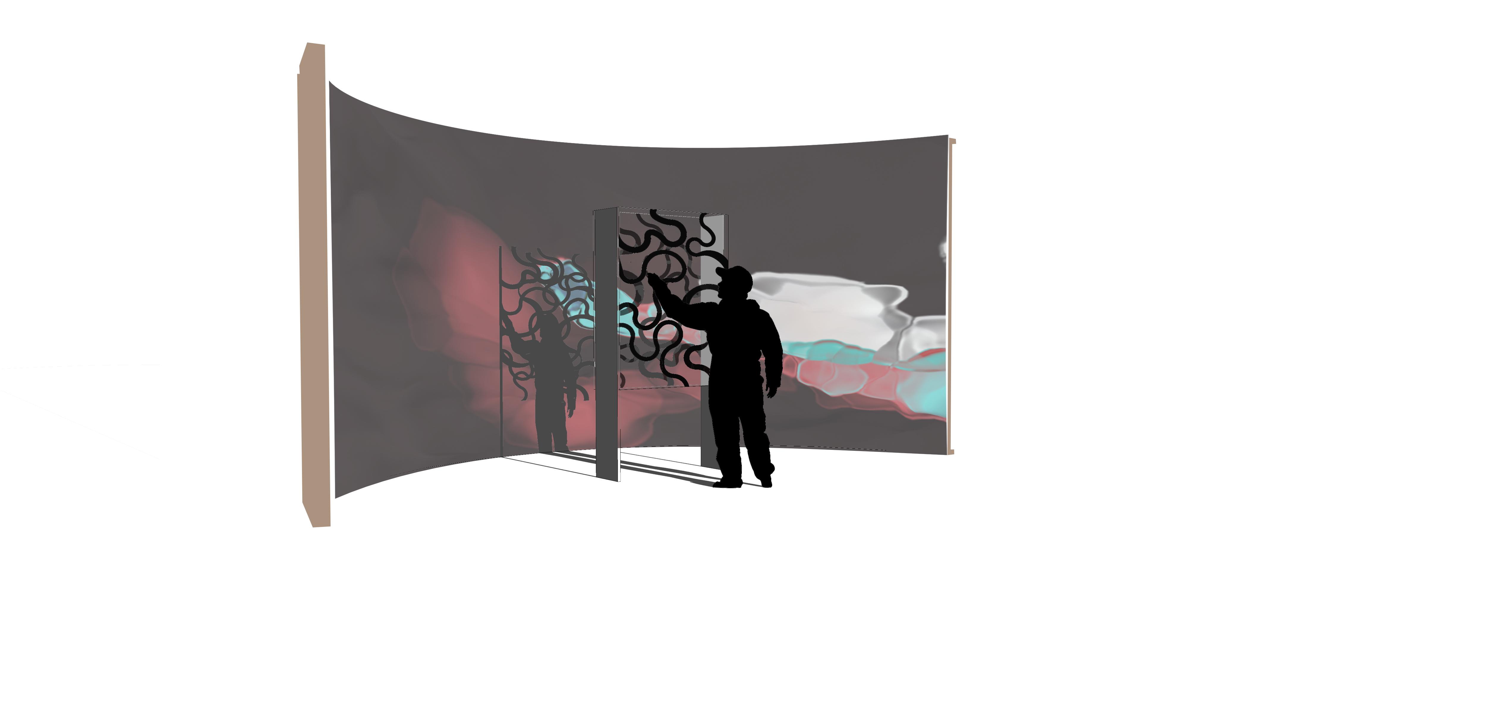 Inchiostro is an interactive installation immersing the participant within a sensory space. The user interacts with the space via the main control board through touch. The control board consists of specialty conductive paint that, when touched, triggers both visual and auditory events filling the space and creating a full-body sensory experience. Through this installation, the user transitions from spectator to participant and becomes a vital part in progressing the sensorial narrative.