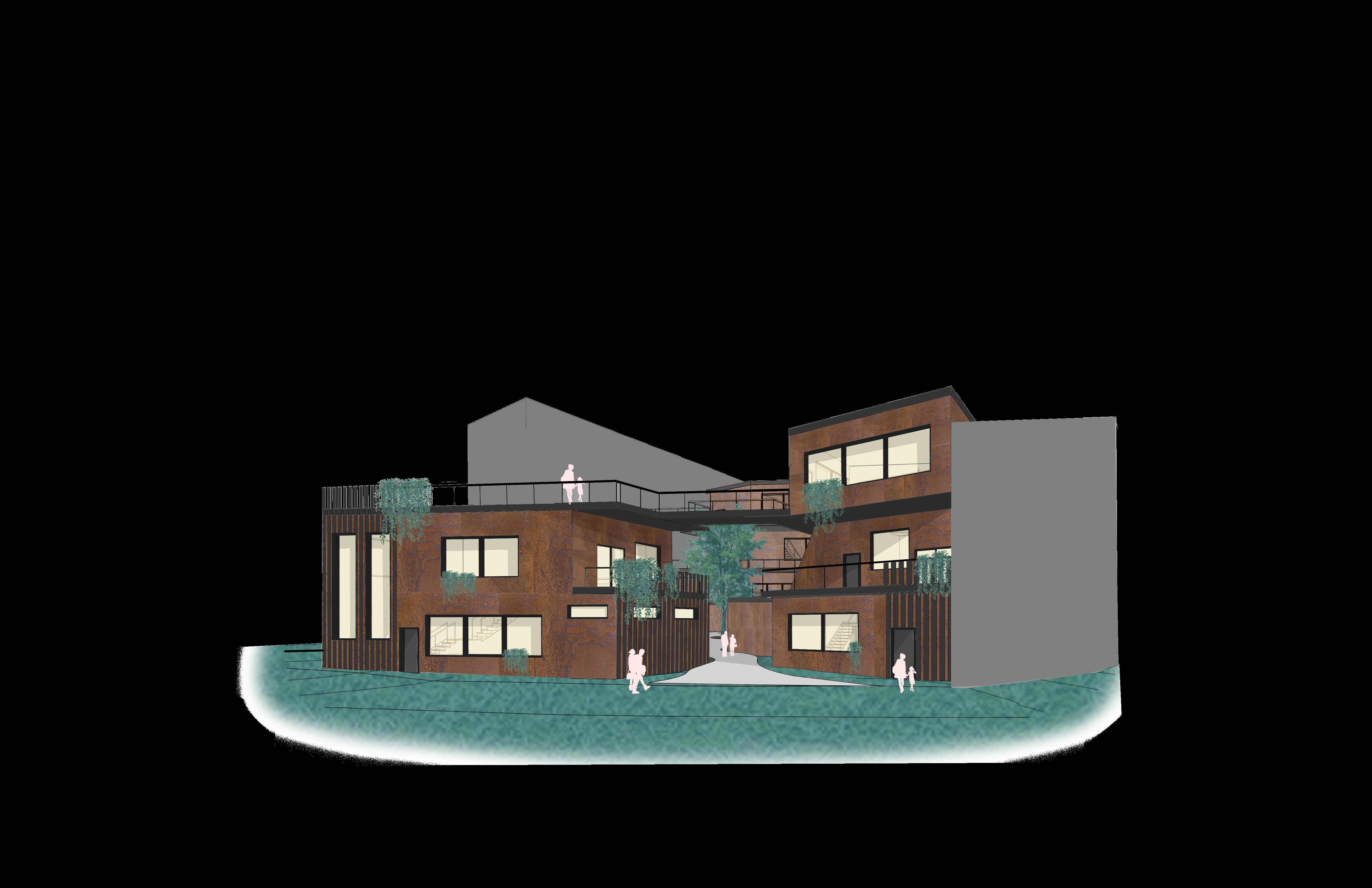 In this project I had to develop three work/live units on a specific site responding to the context. I had to incorporate a coffee shop, a day care, as well as a market. Each space had specific square footing requirements and different deliverables. My concept was based on playfulness and nature.
