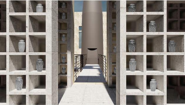 VIEW INTO THE CREMATORIUM FROM THE PUBLIC PLAZA // RHINO, LUMION, & PHOTOSHOP