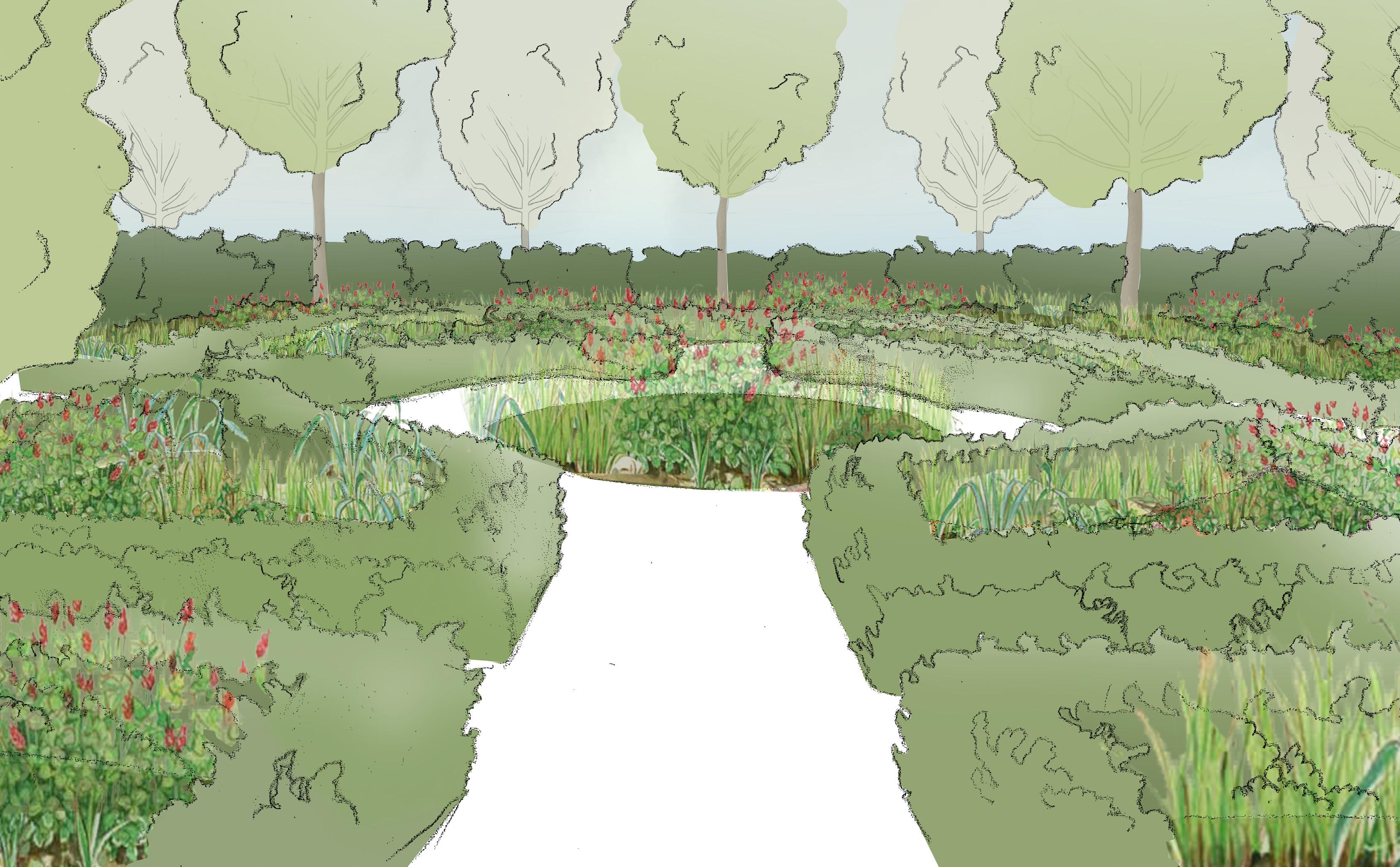 The subject site (Belcamp lands) is located off the Malahide Road, near Dublin City Centre. The site comprises an existing house (with associated additions) and walled garden accessed by an internal access road. Much of the site is relatively level. However, the lands to the south of Belcamp Hall is divided by the Mayne River, the course of which forms a substantial change in level between the main site and the adjoining lands and contains significant woodland.The main aims within the valley area include: Provide public access along the river valley and provide greater ‘visual’ connection to the ponds.