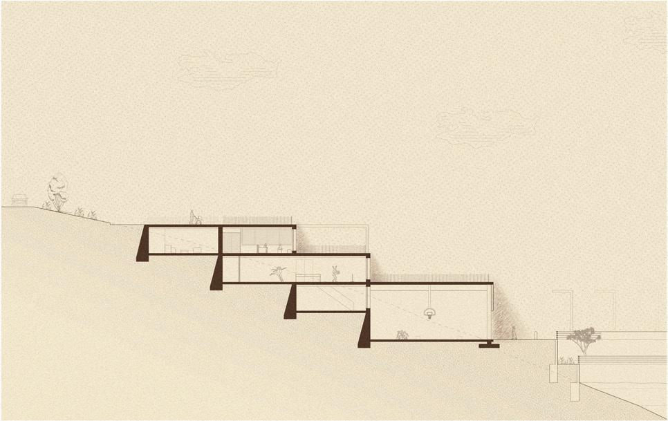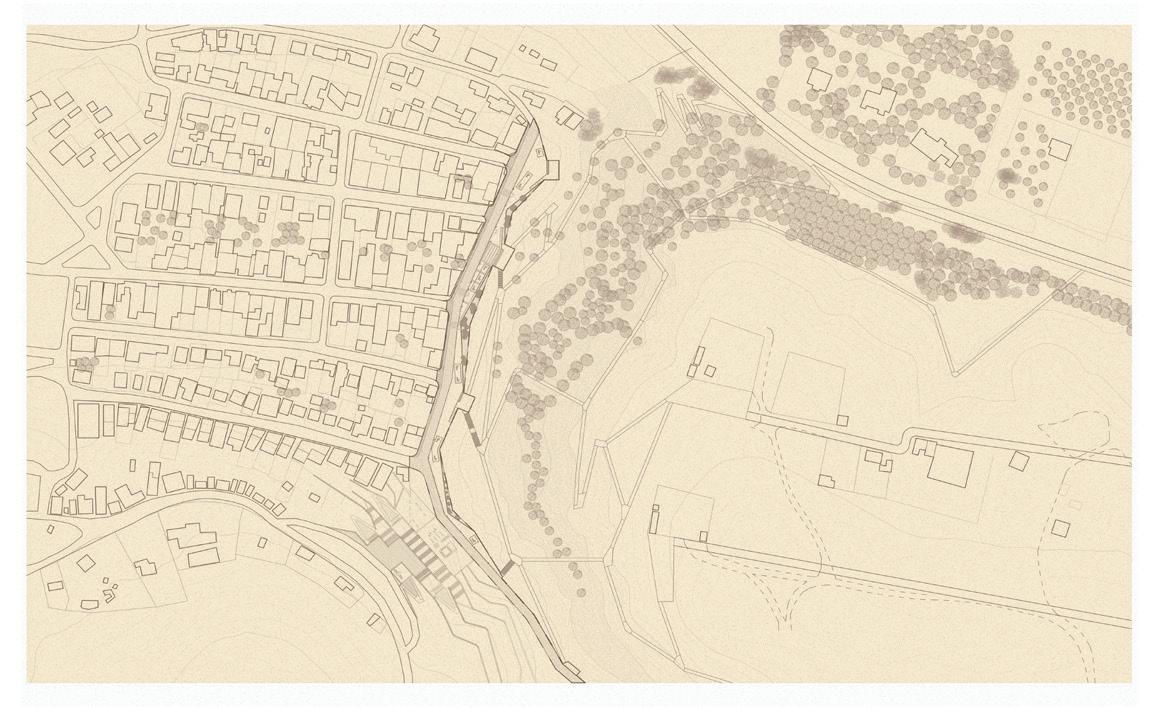 This project focuses on the fringes of one small town, Freirina, located along the Huasco River. This town struggles from the same difficulties as most others in river valleys in the Atacama. Built around steep ravines, the established urban fabric desintegrates near the dangerous areas, and mobility across the slopes is extremely difficult or impossible. This leaves segregated areas, especially between official urban development and informal settlements which have formed along the steepest areas of the ravines.