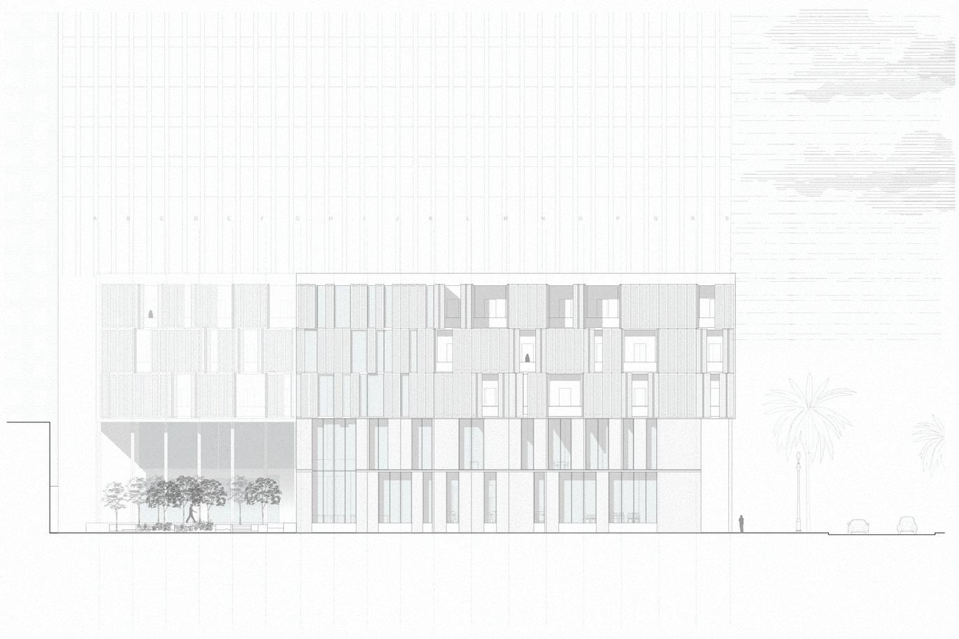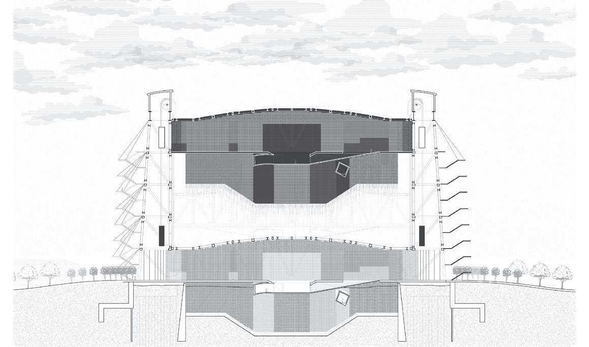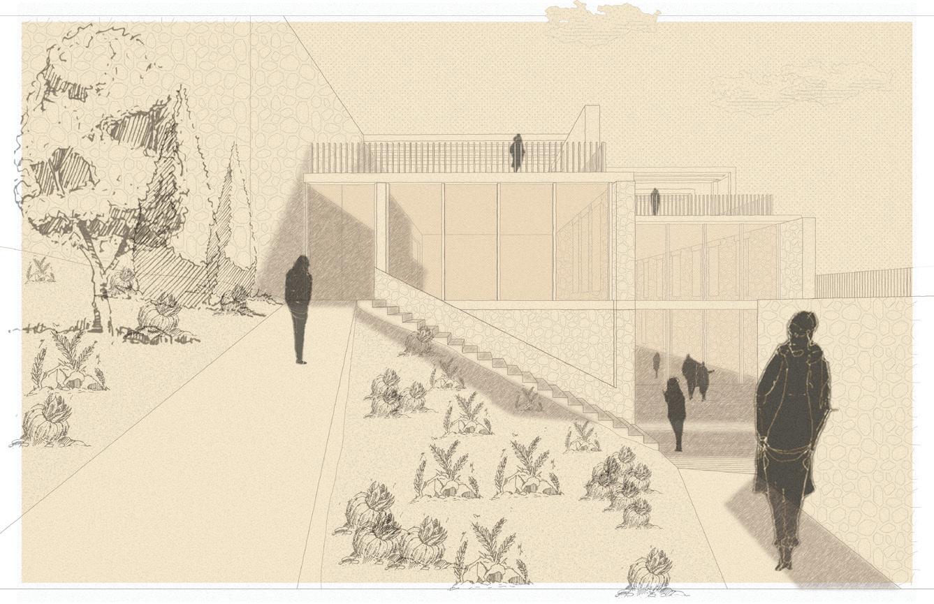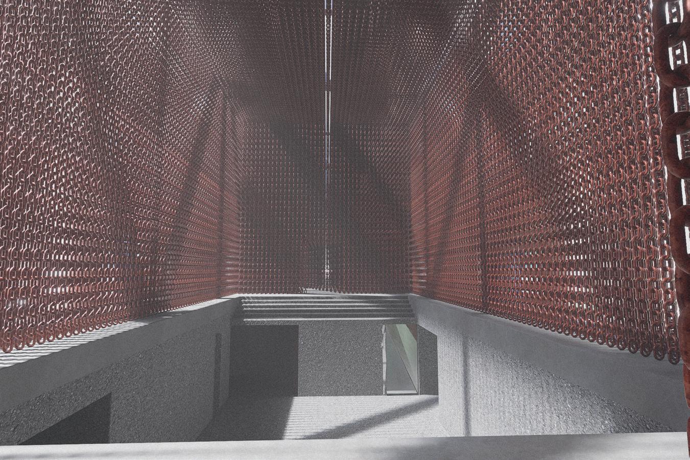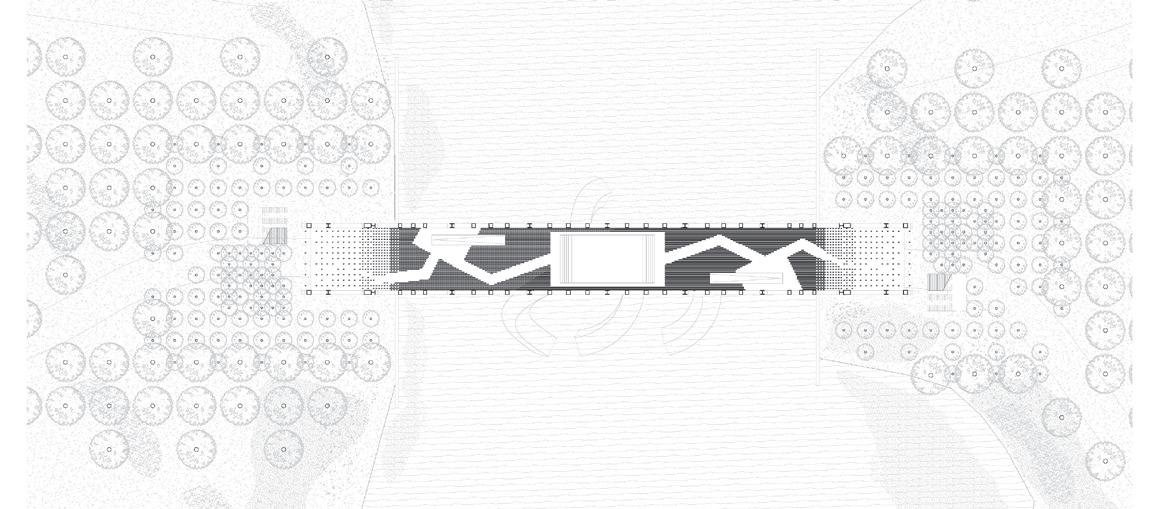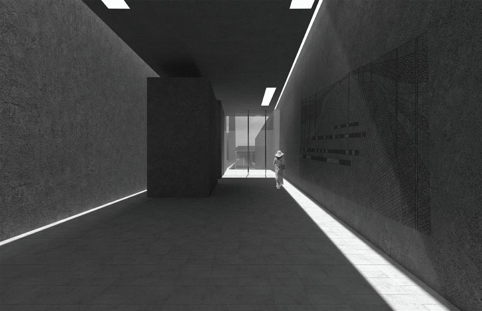 These fingers become the main driver in lighting conditions, experience and programming within the catalyst as they present themselves as massive rammed-earth walls. These walls operate in three different ways: they frame the site and light, they create occupiable space, circulation bands, programming, and experience. Finally, they connect programs and experiences along themselves. Visitors will walk through these walls before breaking through them into large open spaces for reading, exhibition, or performance.