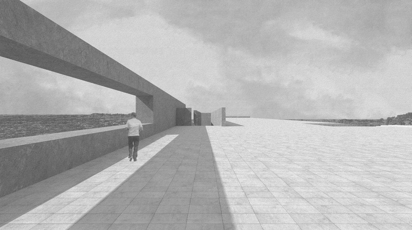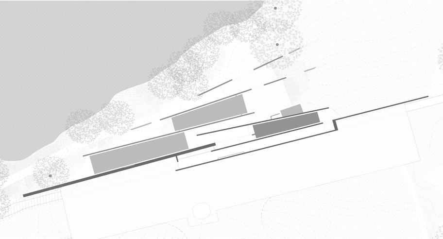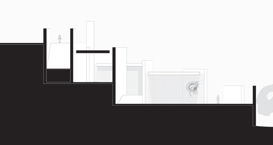 Visitors will circulate between a system of retaining walls that slowly disintegrate towards the water line, opening up at the end of the experience. These retaining walls dictate every aspect of the experience, from circulation to light permeation, and even interior vs. exterior space. As visitors descend, they experience three interior spaces - all of which are slotted between the retaining walls, and enclosed with glass planes on the ends. This allows the interior and exterior to blend, eliminating the presence of a threshold.