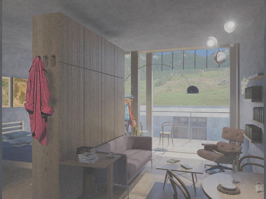 This project takes on existing social and economic issues in Vals, and the surrounding region. Much like many other small alpine villages, the town of Vals is experiencing an increasingly aging population, with the town not yet providing proper infrastructure for the older population, leading to lack of elder-care in the region as a whole. Additionally, years of catering to a luxury-tourist demographic with the success of the Thermal Baths have led to clear gaps in affordable infrastructure like short- and long-term housing, and dining have arisen.