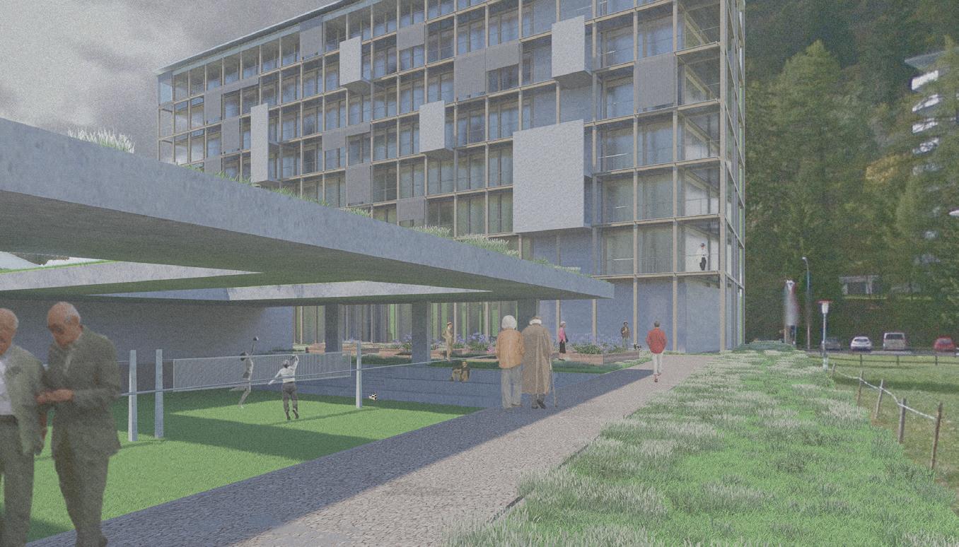 This proposal offers a solution to the housing and care issues in Vals by creating an intergenerational community of senior citizens and those looking for an affordable stay in Vals, connecting this micro-community and the direct needs of Vals through wellness.