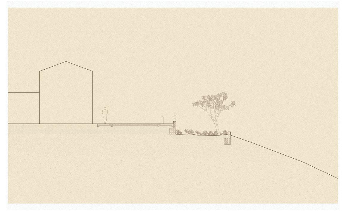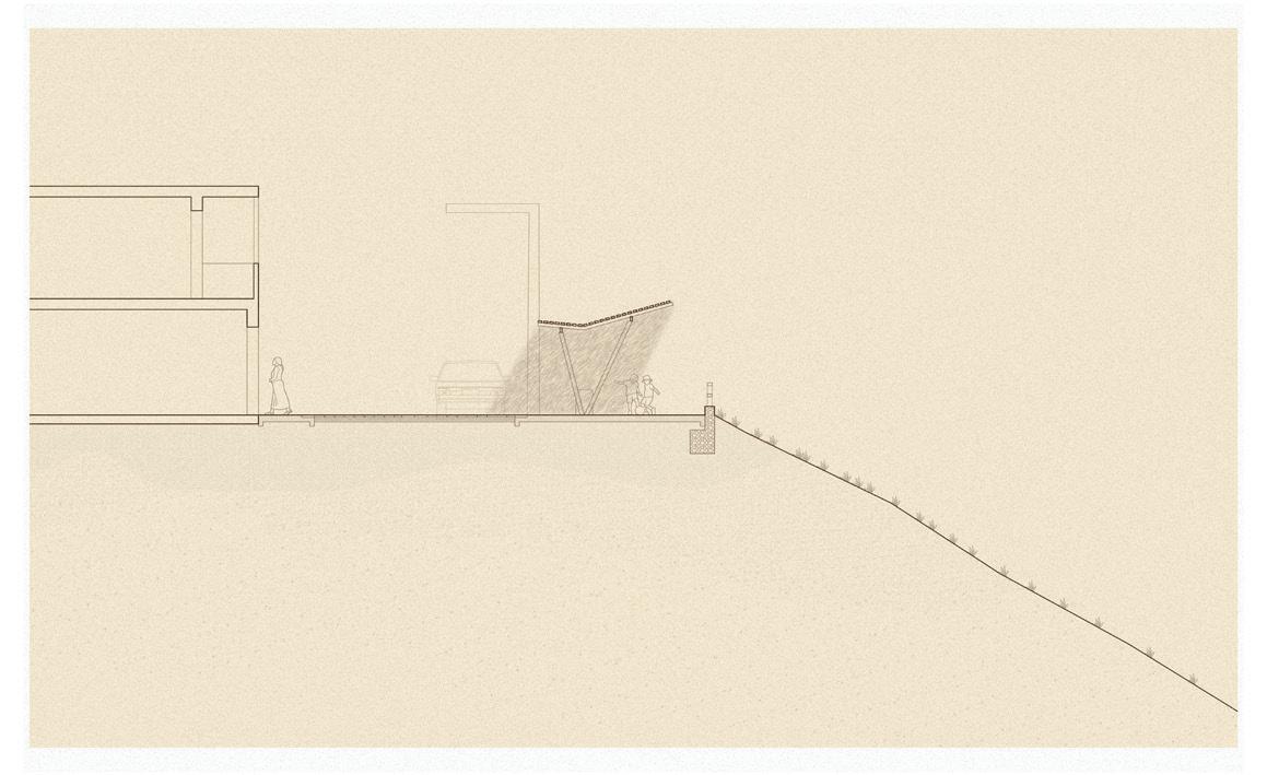 By creating a new corridor along the ravine, the edges of the fabric can become fortified. Added public space along this new corridor serve multiple purposes. First, the small plazas and terraces stabilize the terrain and mitigate landslides through their form and integration with the ravine. They also provide formal gathering space along the fringe developments and informal settlements, giving a sense of place for those sub-communities. The extension of the public space takes its shape in the form of ramps, which provide mobility across the ravine, while continuing to stabilize the landscape.