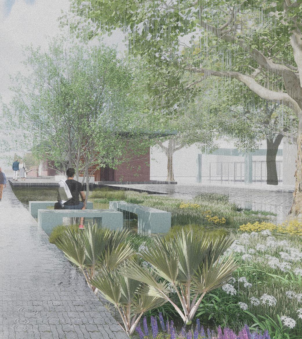 The permeable materiality of the project allows visitors to physically approach the water, interacting with it as it filters into the space and creates spaces for reflection. As the beast rises from the water, it weeps, yearning for the water. Meanwhile, as it lifts, visitors can reach an elevated vantage point and a completely different experience, allowing them to enjoy the magic of the place: the marshes, the water of the ground and sky, the city. The transformation of this beast allows each individual to leave their ego behind and return to the simplest of roots: water.