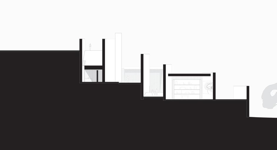 Below: Section through entry ramp and reading room