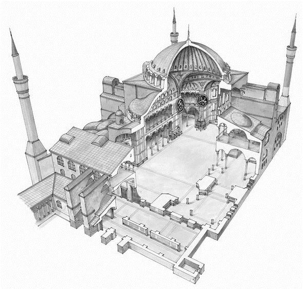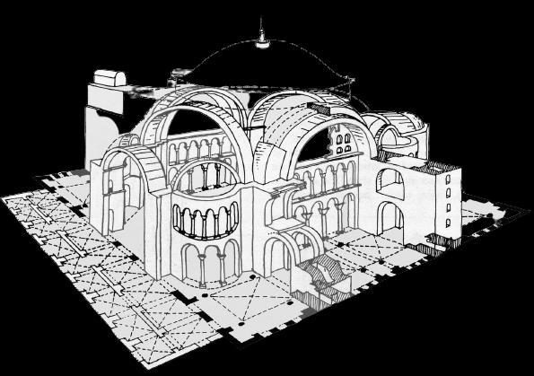 ES CONSIDERADA LA OBRA CUMBRE DE LA ARQUITECTURA BIZANTINA, CONSTRUIDAENTROLOSAÑOS532Y 537PORLOSARQUITECTOSANTEMIO DE TRALLES E ISIDORO DE MILETO, POR ÓRDENES DEL EMPERADOR