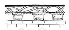 LADRILLOS EN CANTO, GRUESOS LECHOS DE MORTERO, MÁRMOLES DE COLORES, PÓRFIDO, BASALTO Y POLICROMADOS.