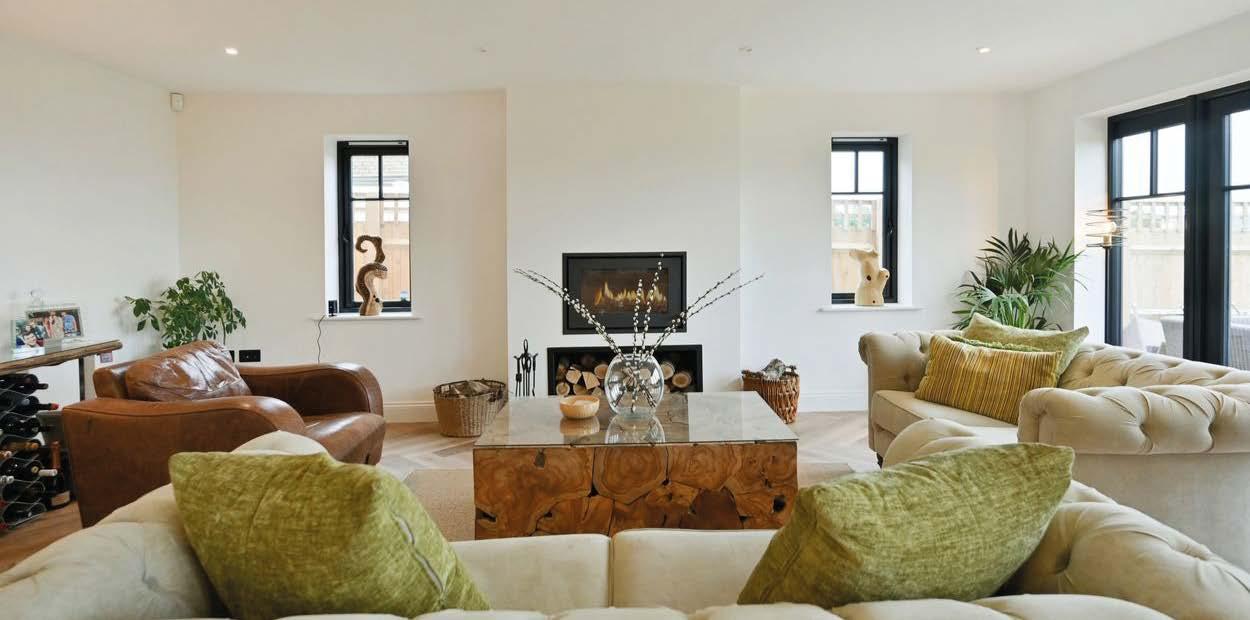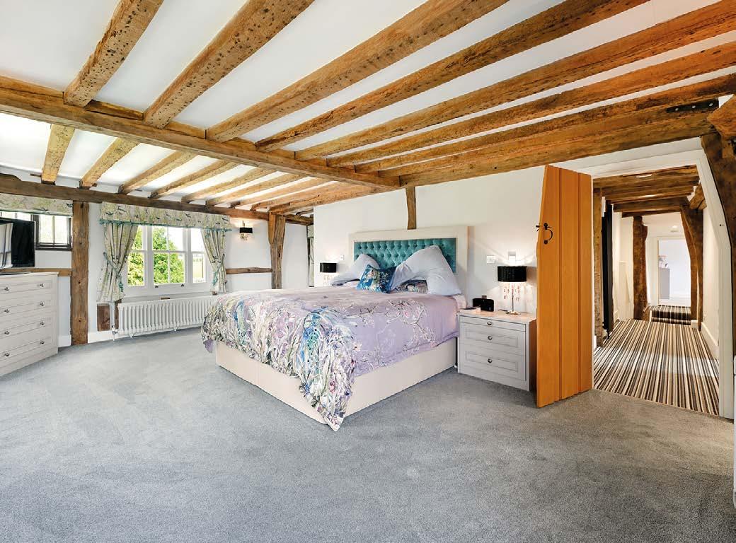 At the heart of the home lies a bespoke kitchen, complete with granite worktops, high-end Siemens appliances, and a unique dry well, alongside a hidden bookcase that opens to reveal a secret passageway. Formal entertaining is elevated by the dining room’s inglenook fireplace and the lounge’s dualfuel log burner, while a dedicated study and generous cellar add further appeal.